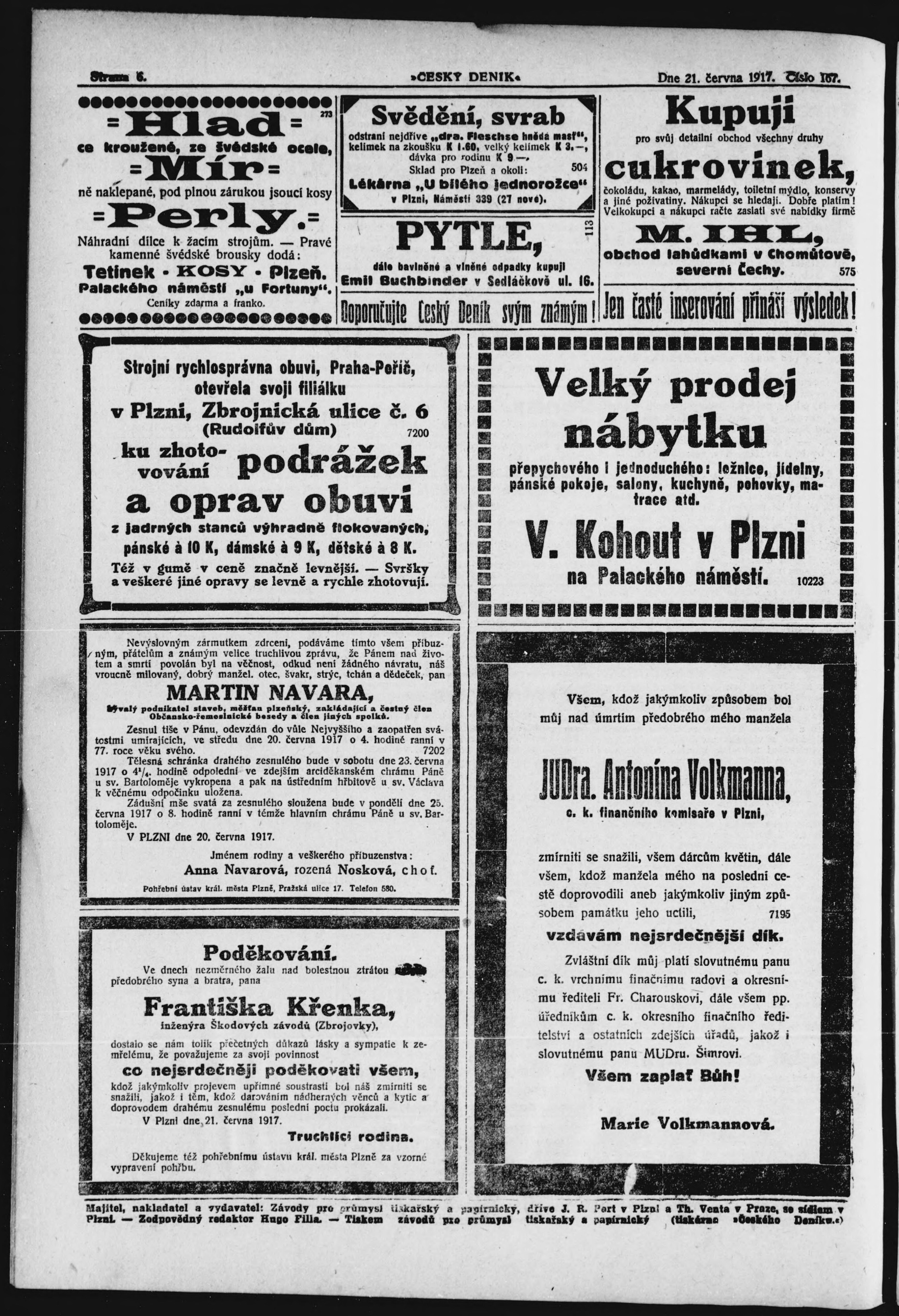 * Datum vydání výtisku: 21.6.1917 Číslo výtisku: 167