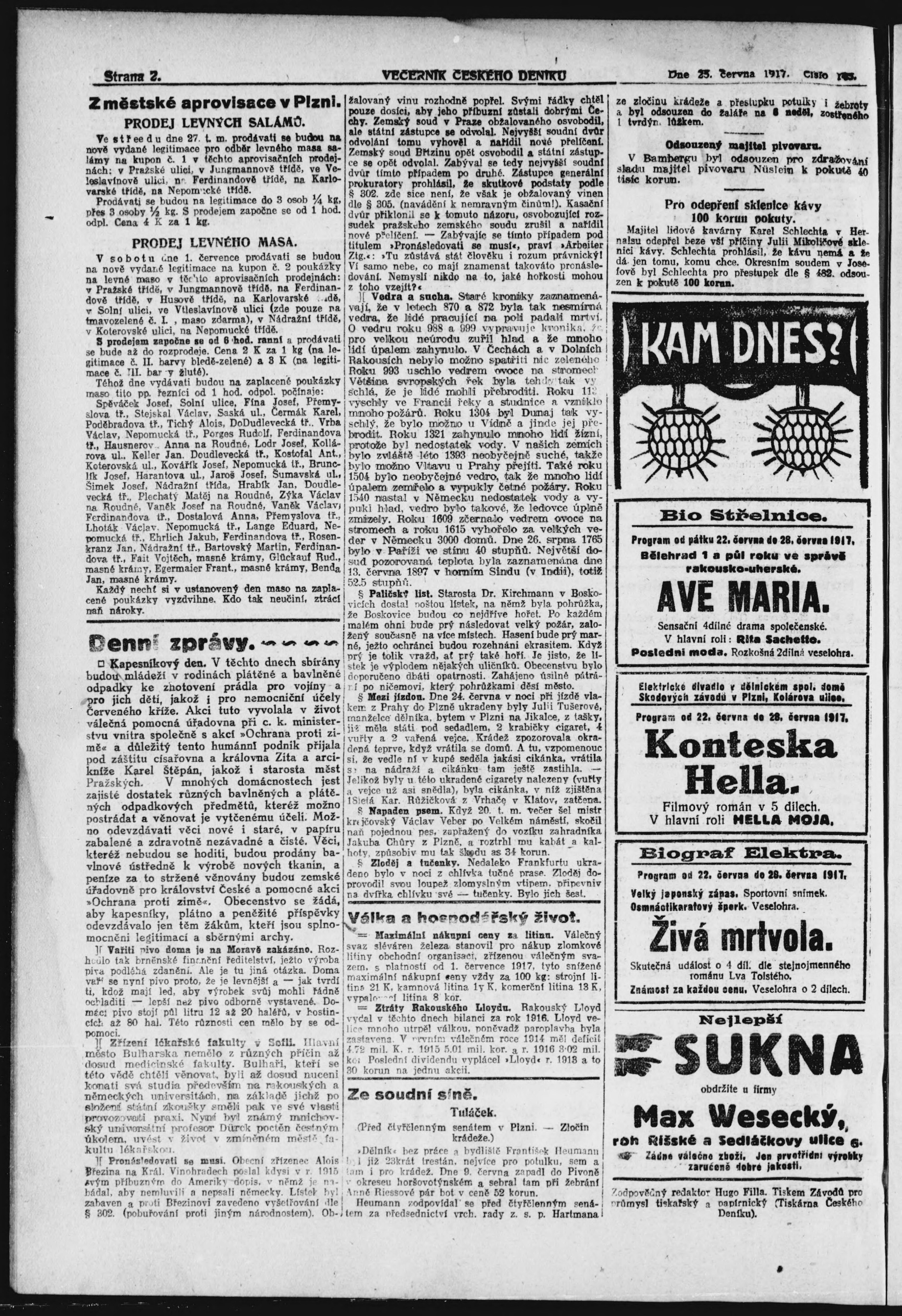 * Datum vydání výtisku: 25.6.1917 Číslo výtisku: 143 Poznámky k výtisku: večerní vydání;