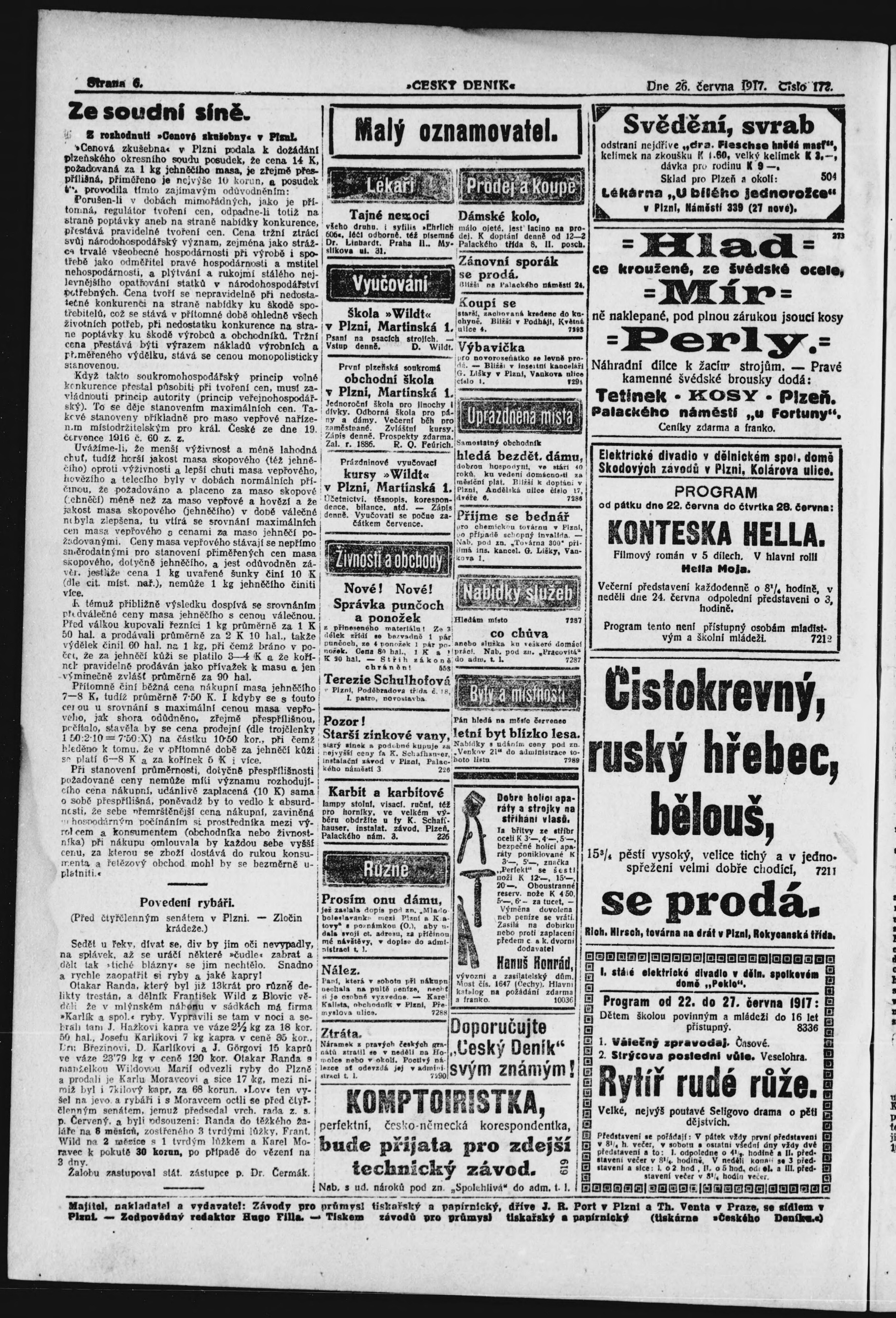 * Datum vydání výtisku: 26.6.1917 Číslo výtisku: 172