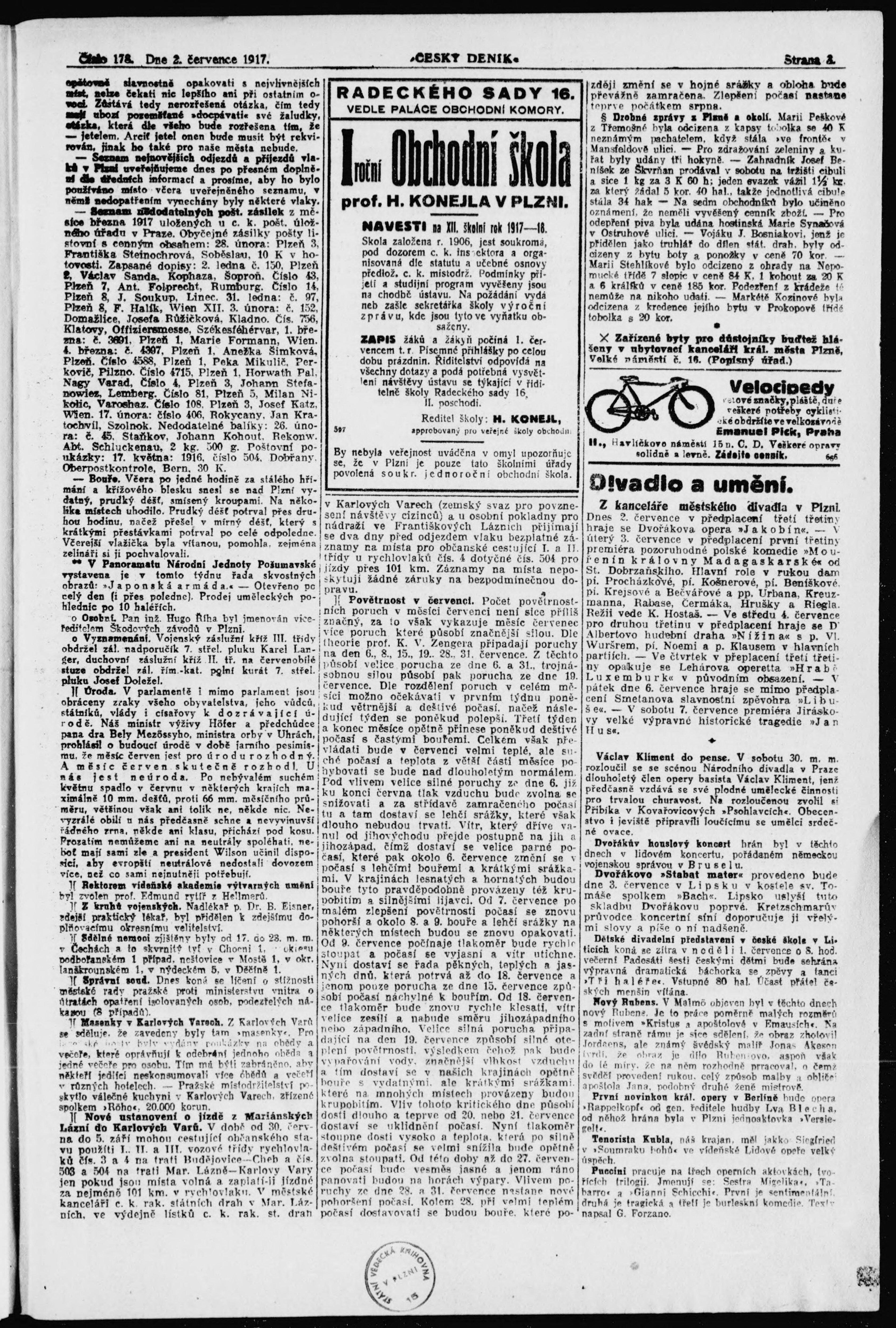 * Datum vydání výtisku: 2.7.1917 Číslo výtisku: 178