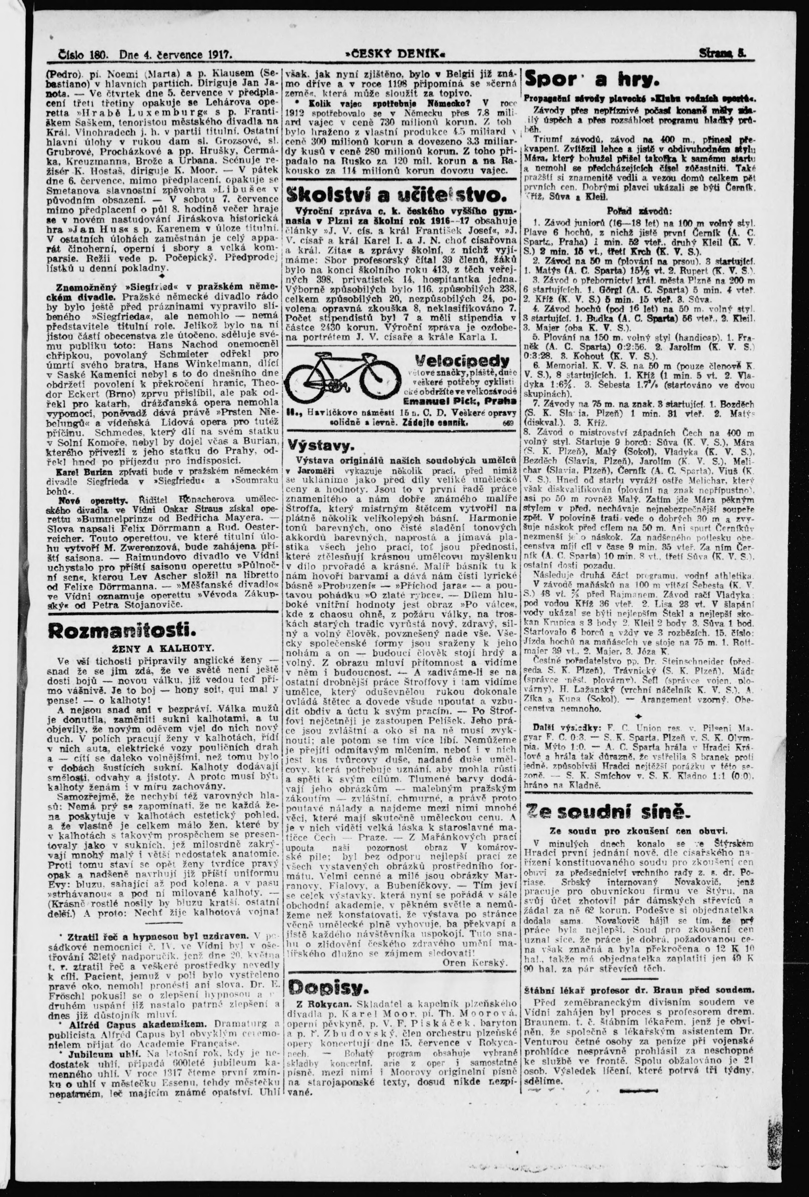 * Datum vydání výtisku: 4.7.1917 Číslo výtisku: 180