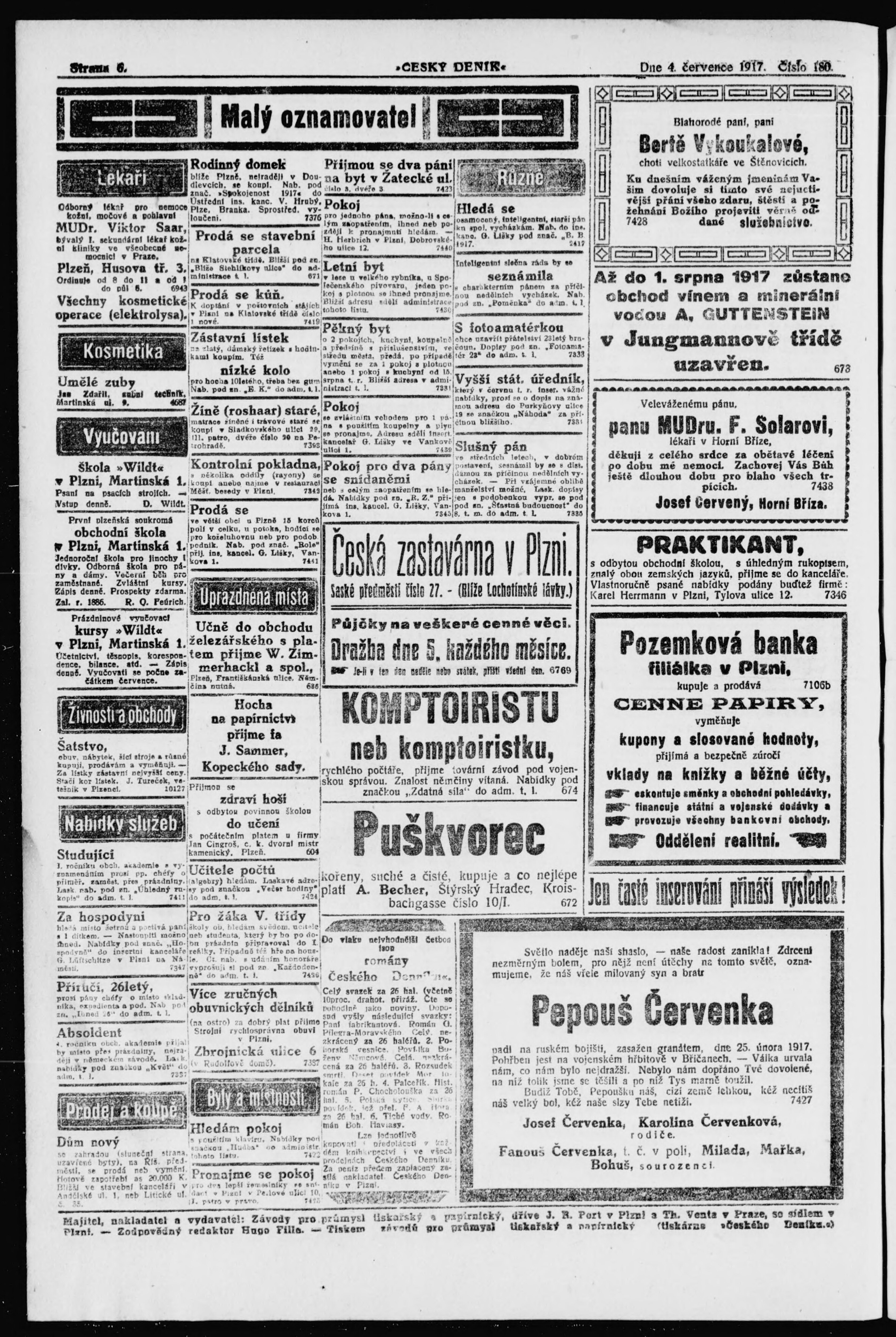 * Datum vydání výtisku: 4.7.1917 Číslo výtisku: 180
