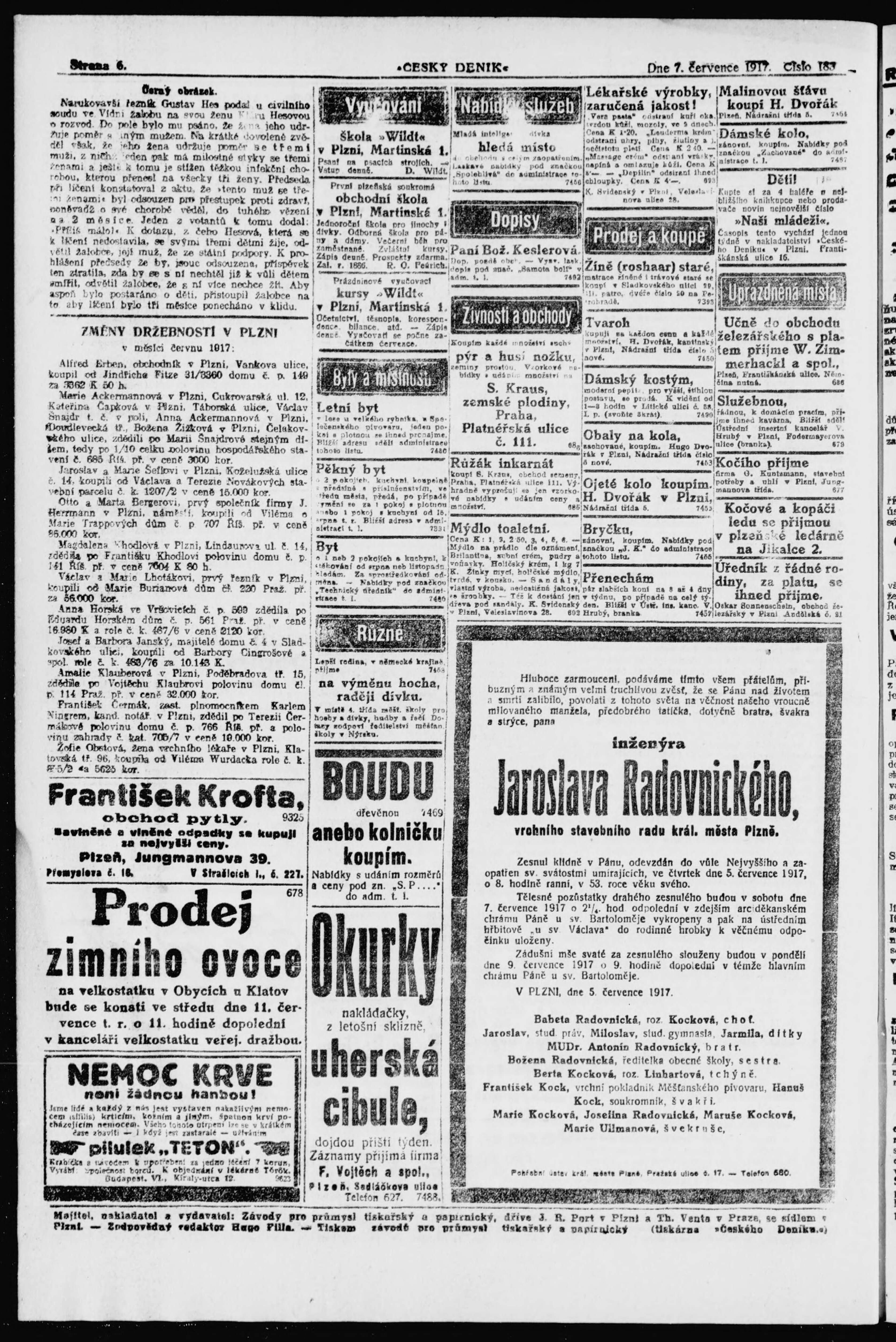 * Datum vydání výtisku: 7.7.1917 Číslo výtisku: 183