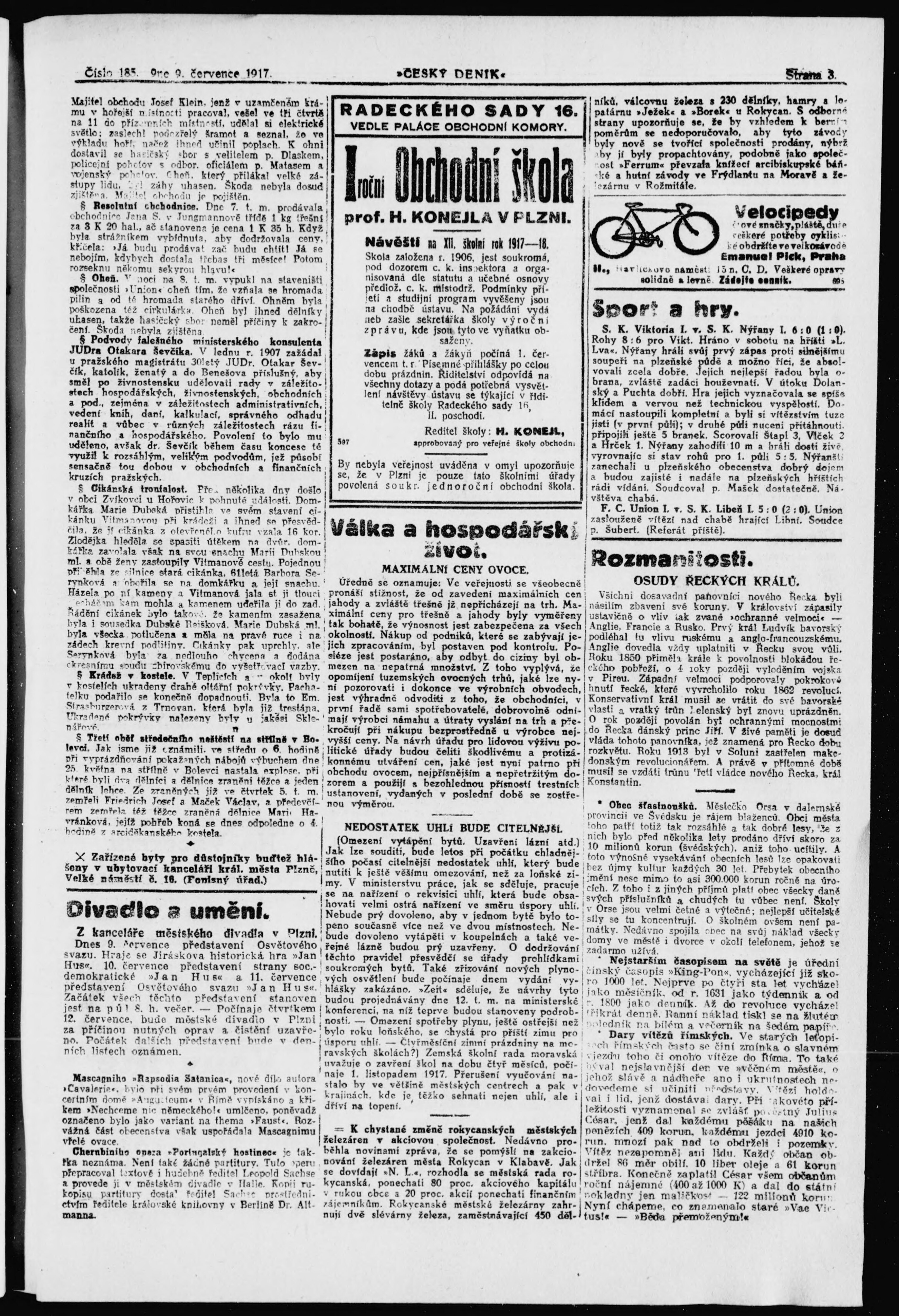 * Datum vydání výtisku: 9.7.1917 Číslo výtisku: 185