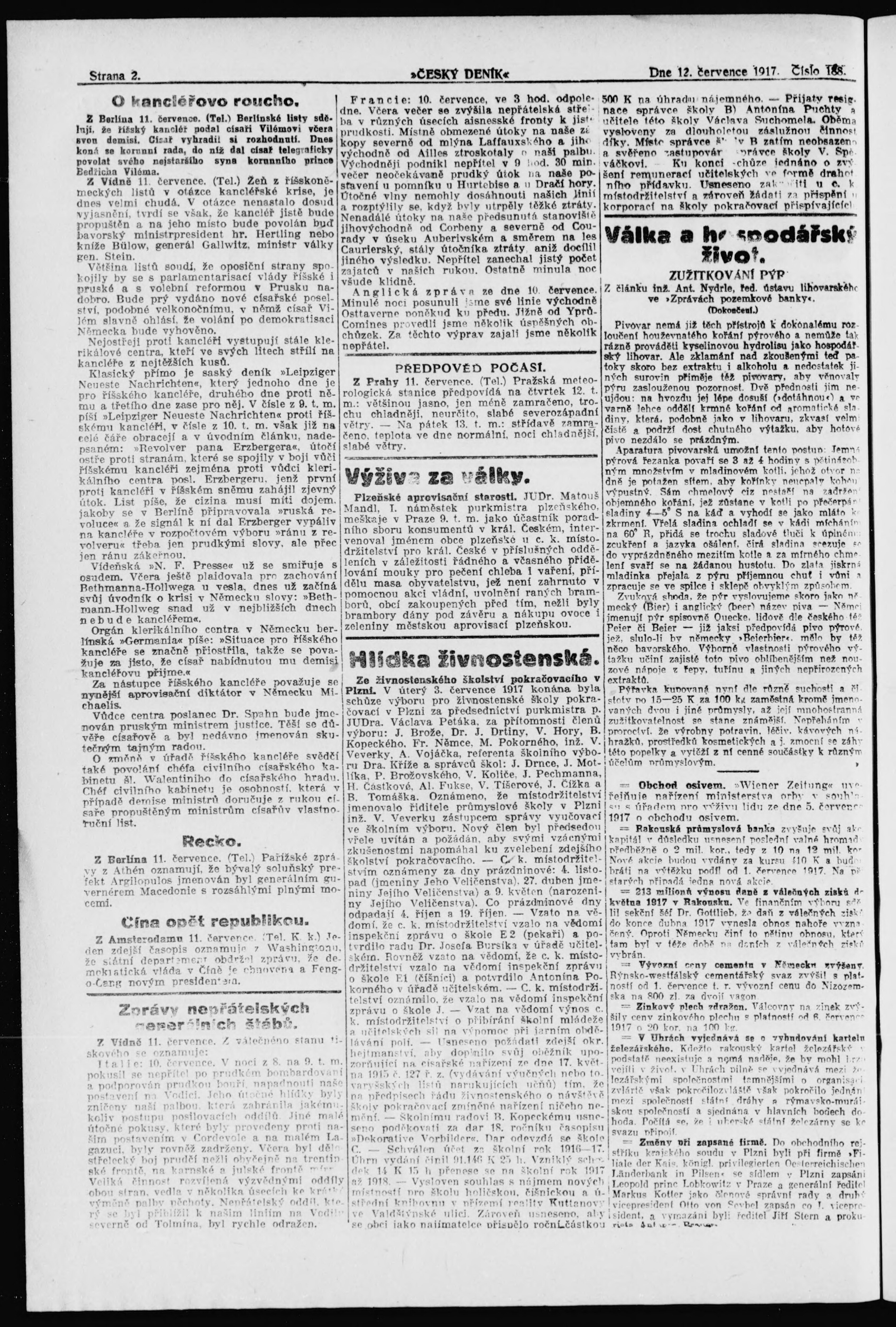 * Datum vydání výtisku: 12.7.1917 Číslo výtisku: 188