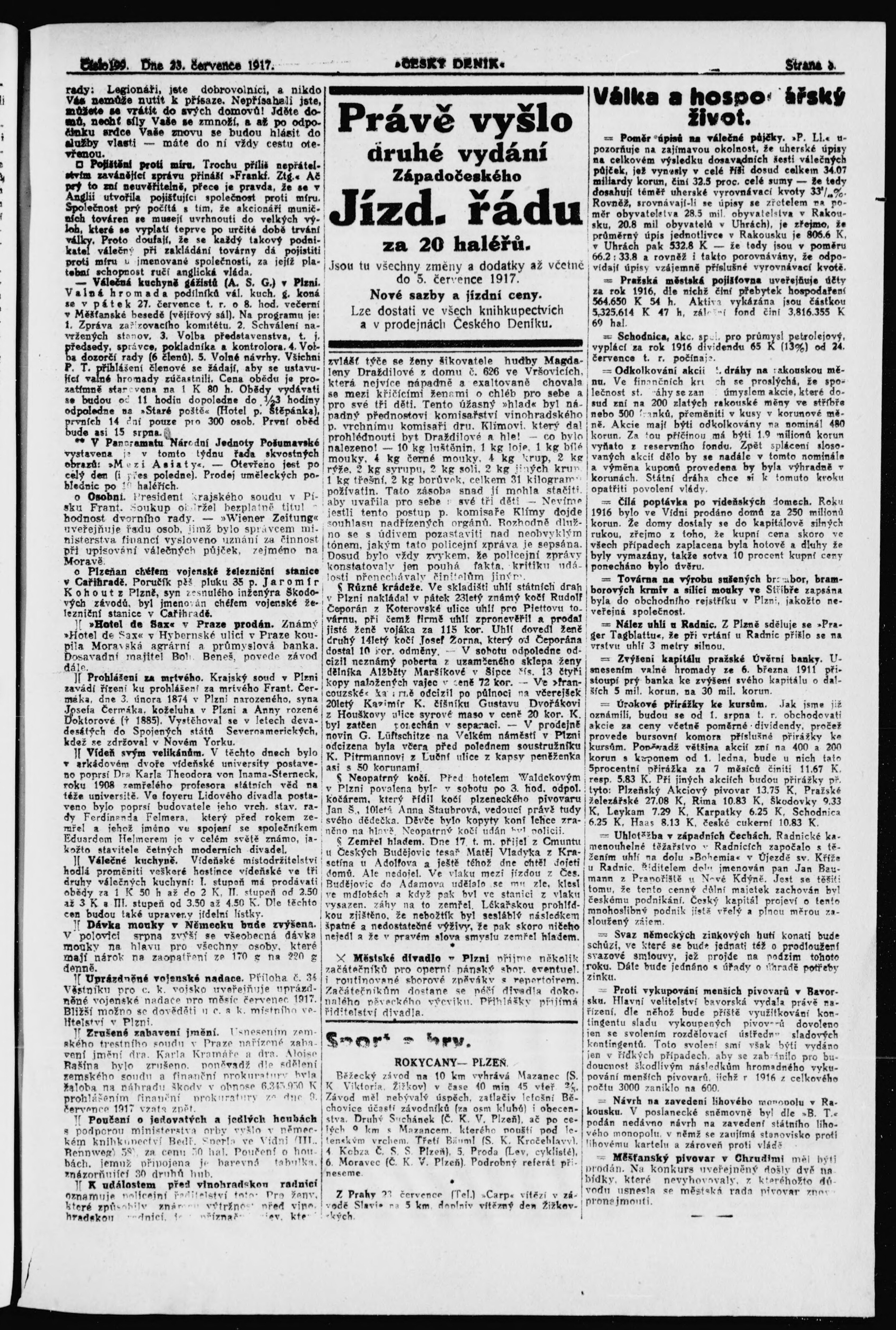* Datum vydání výtisku: 23.7.1917 Číslo výtisku: 199
