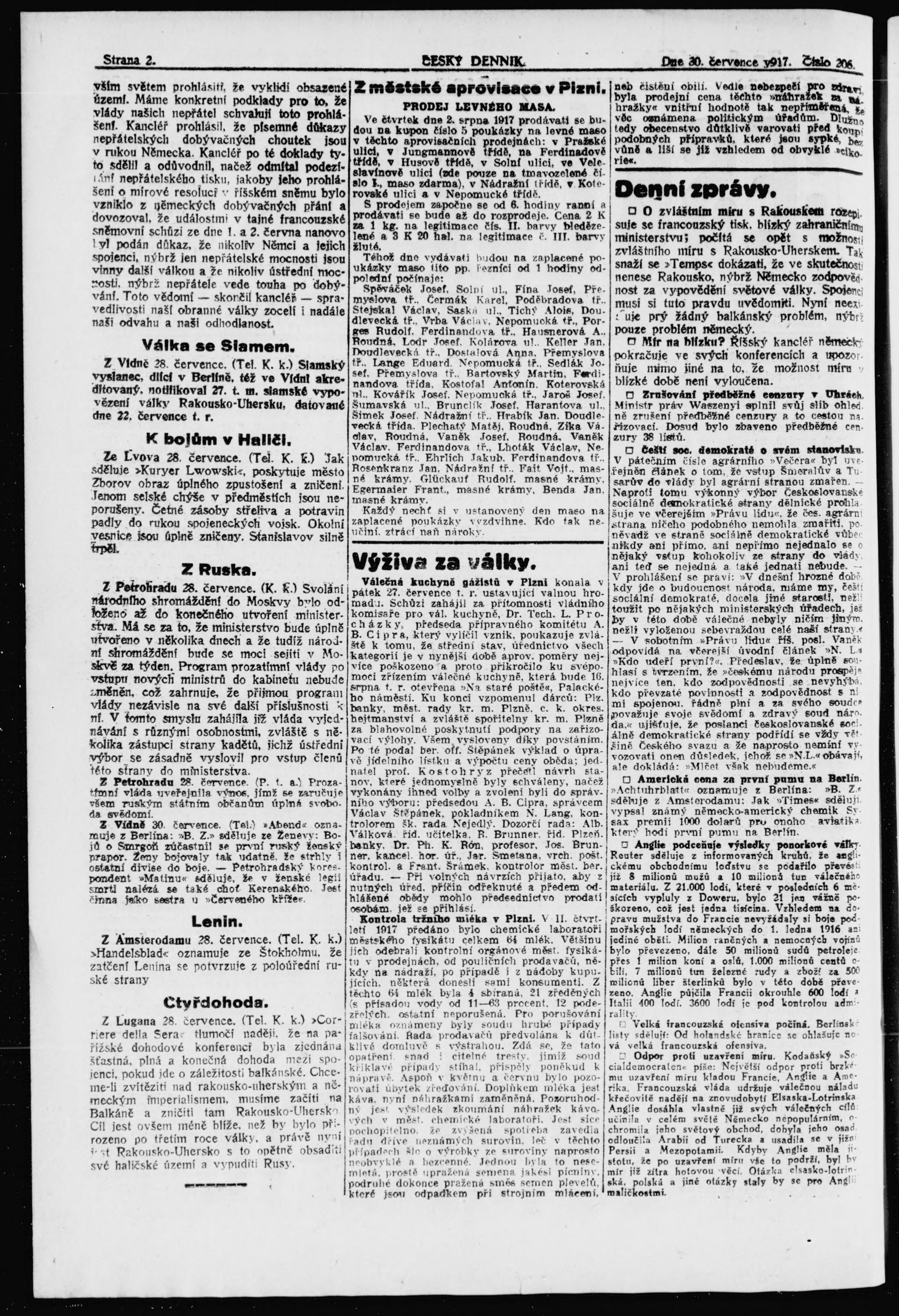 * Datum vydání výtisku: 30.7.1917 Číslo výtisku: 206