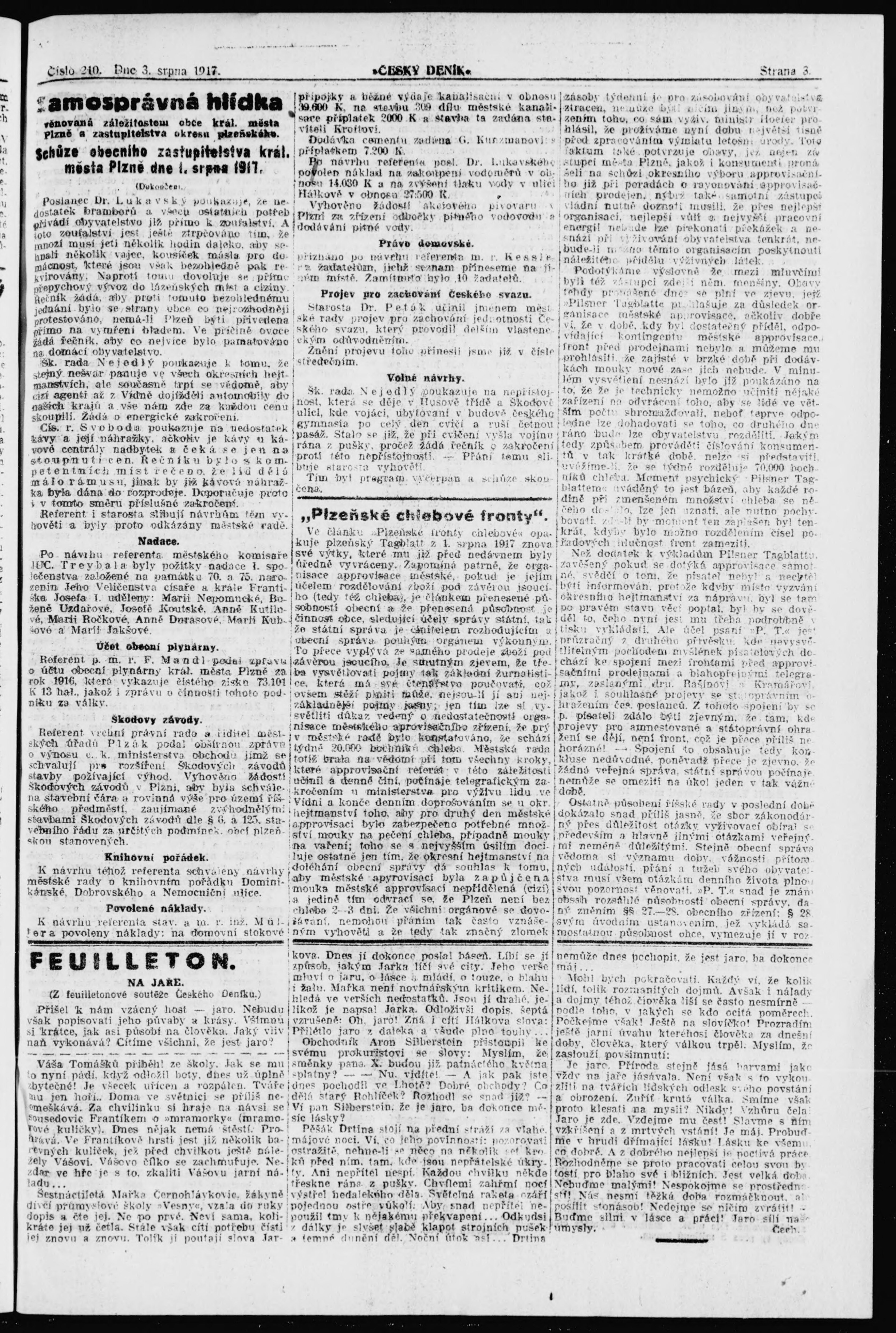 * Datum vydání výtisku: 3.8.1917 Číslo výtisku: 210