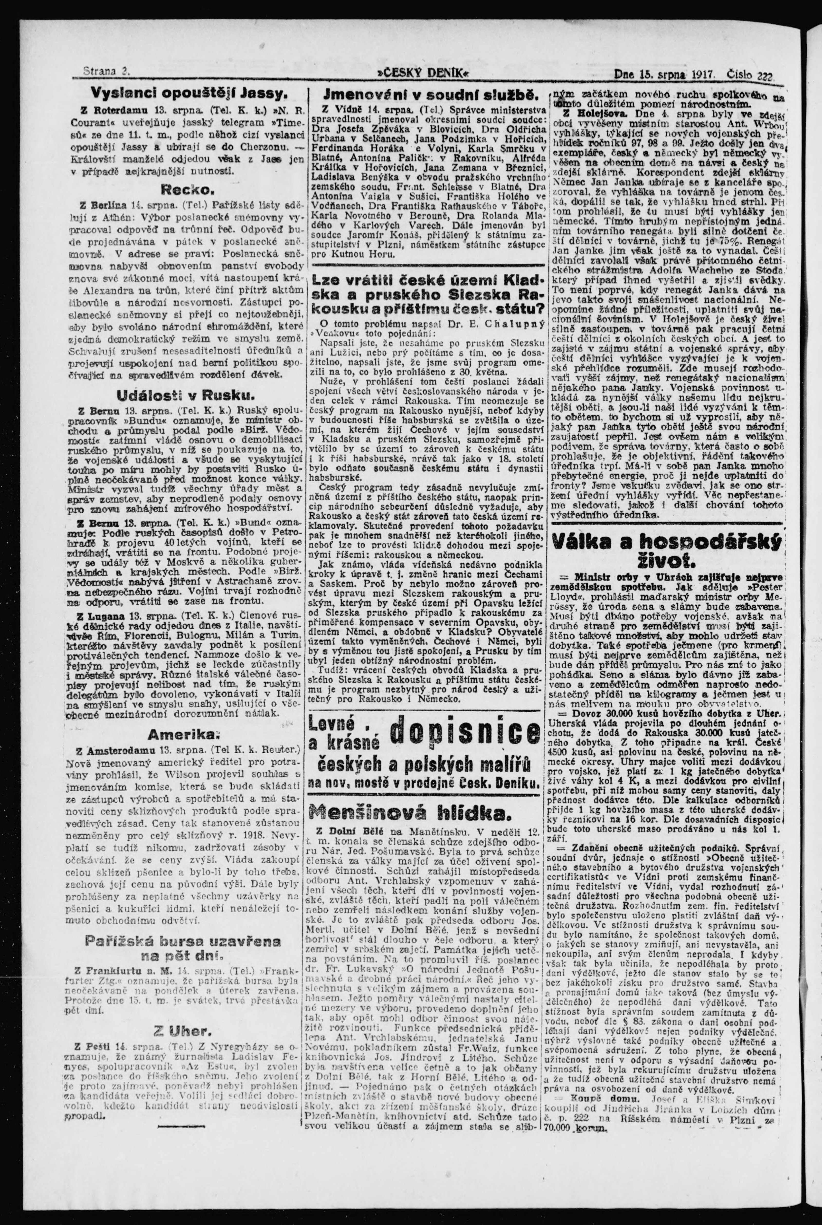 * Datum vydání výtisku: 15.8.1917 Číslo výtisku: 222