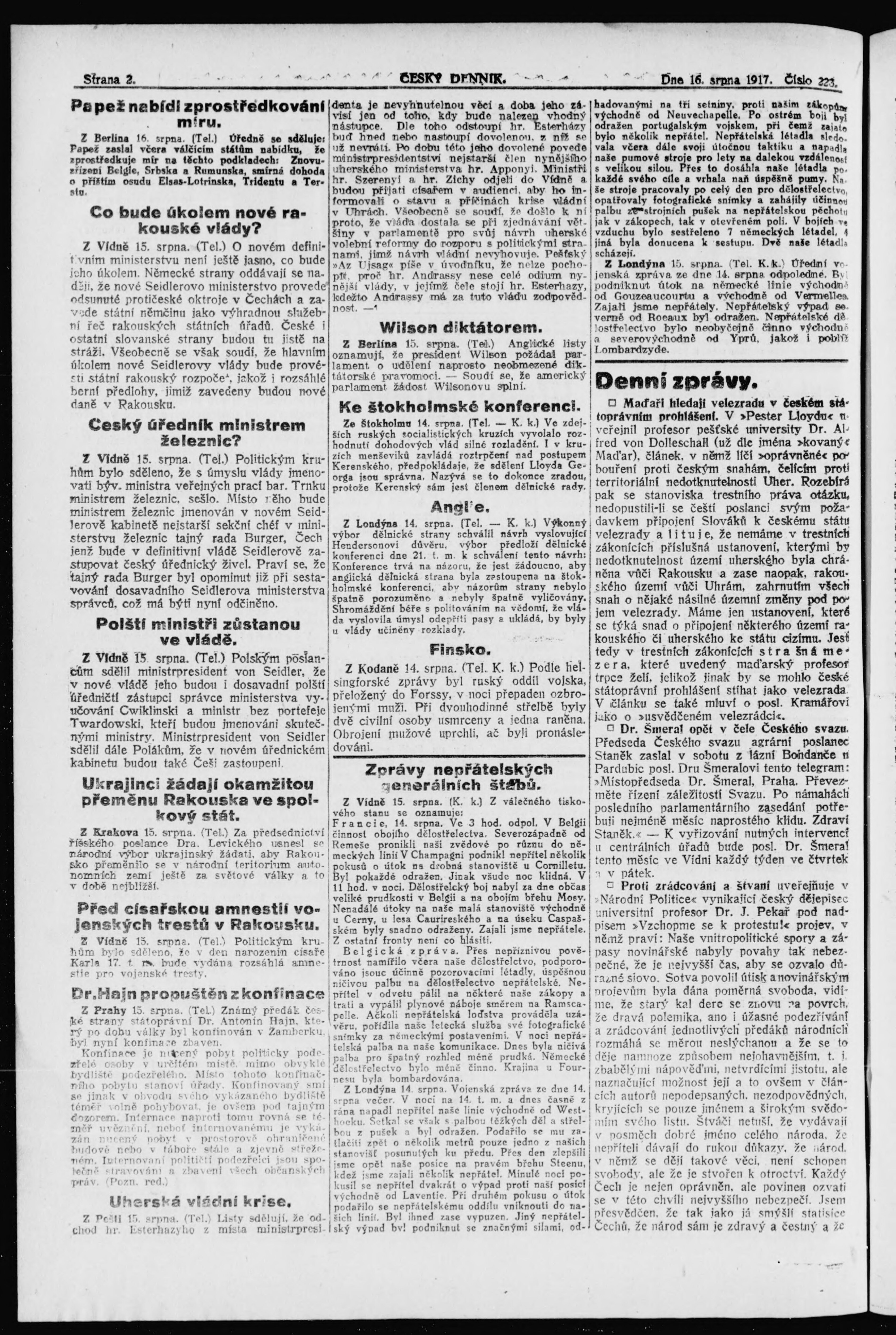 * Datum vydání výtisku: 16.8.1917 Číslo výtisku: 223