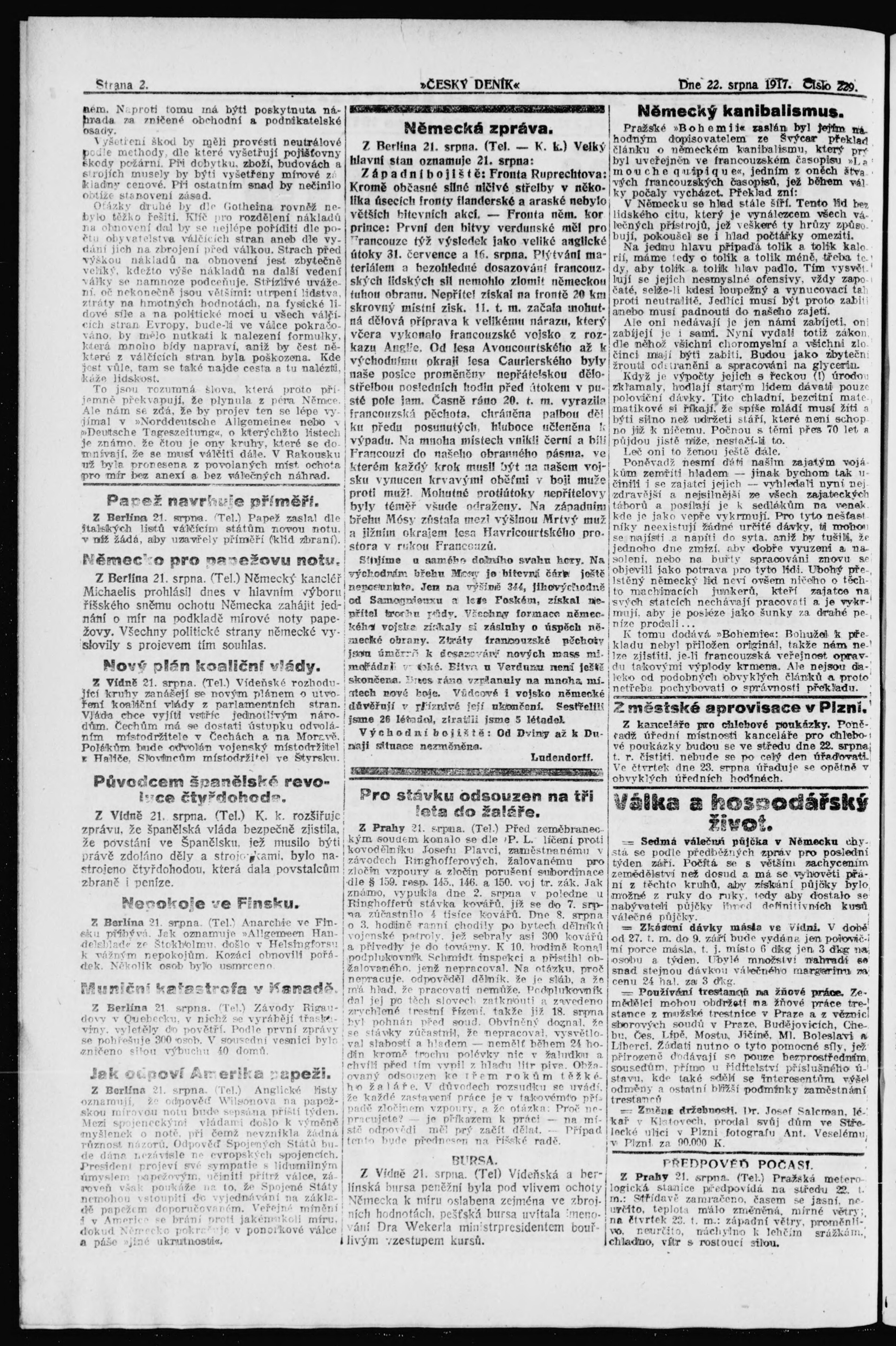 * Datum vydání výtisku: 22.8.1917 Číslo výtisku: 229