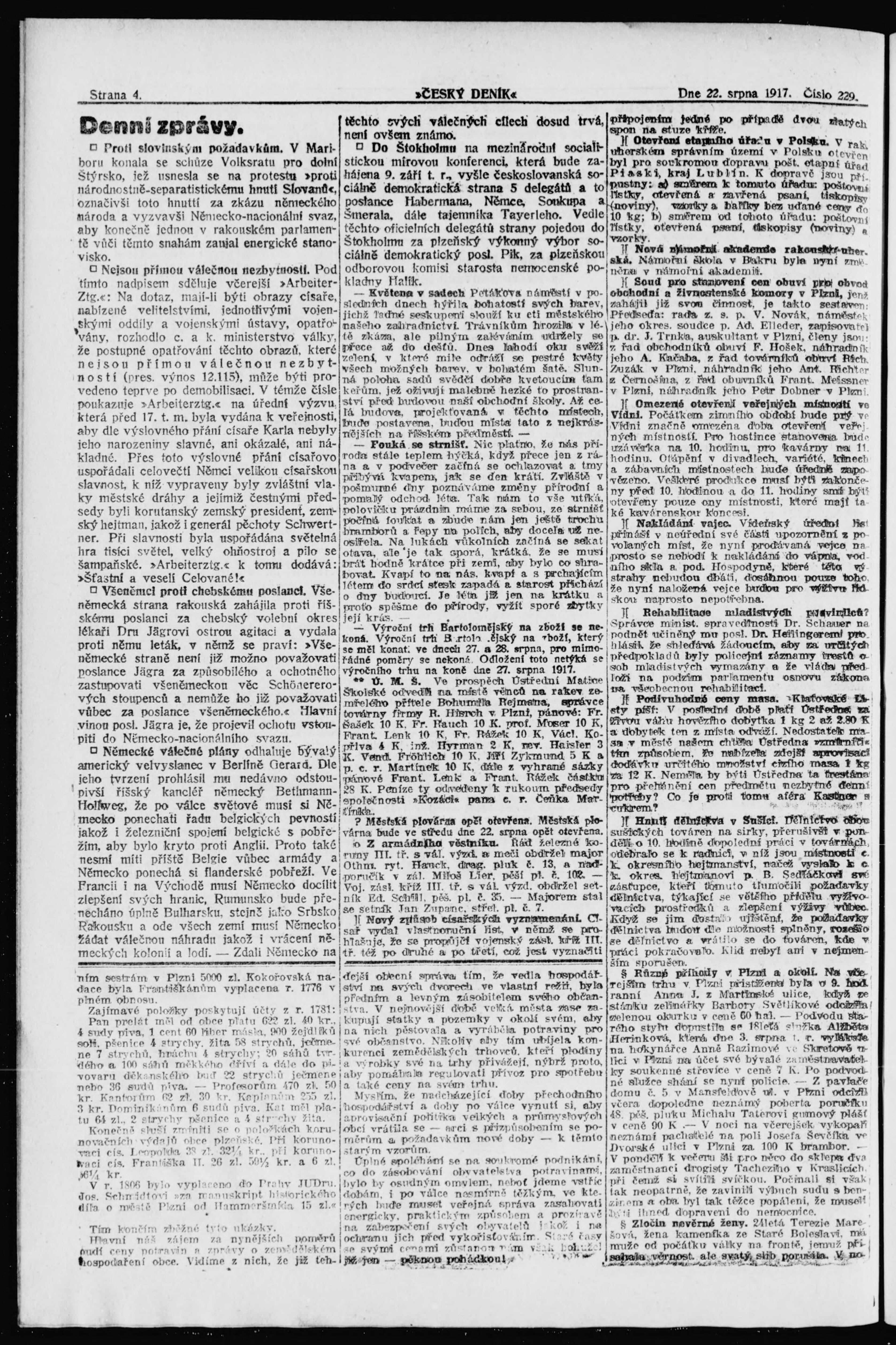* Datum vydání výtisku: 22.8.1917 Číslo výtisku: 229