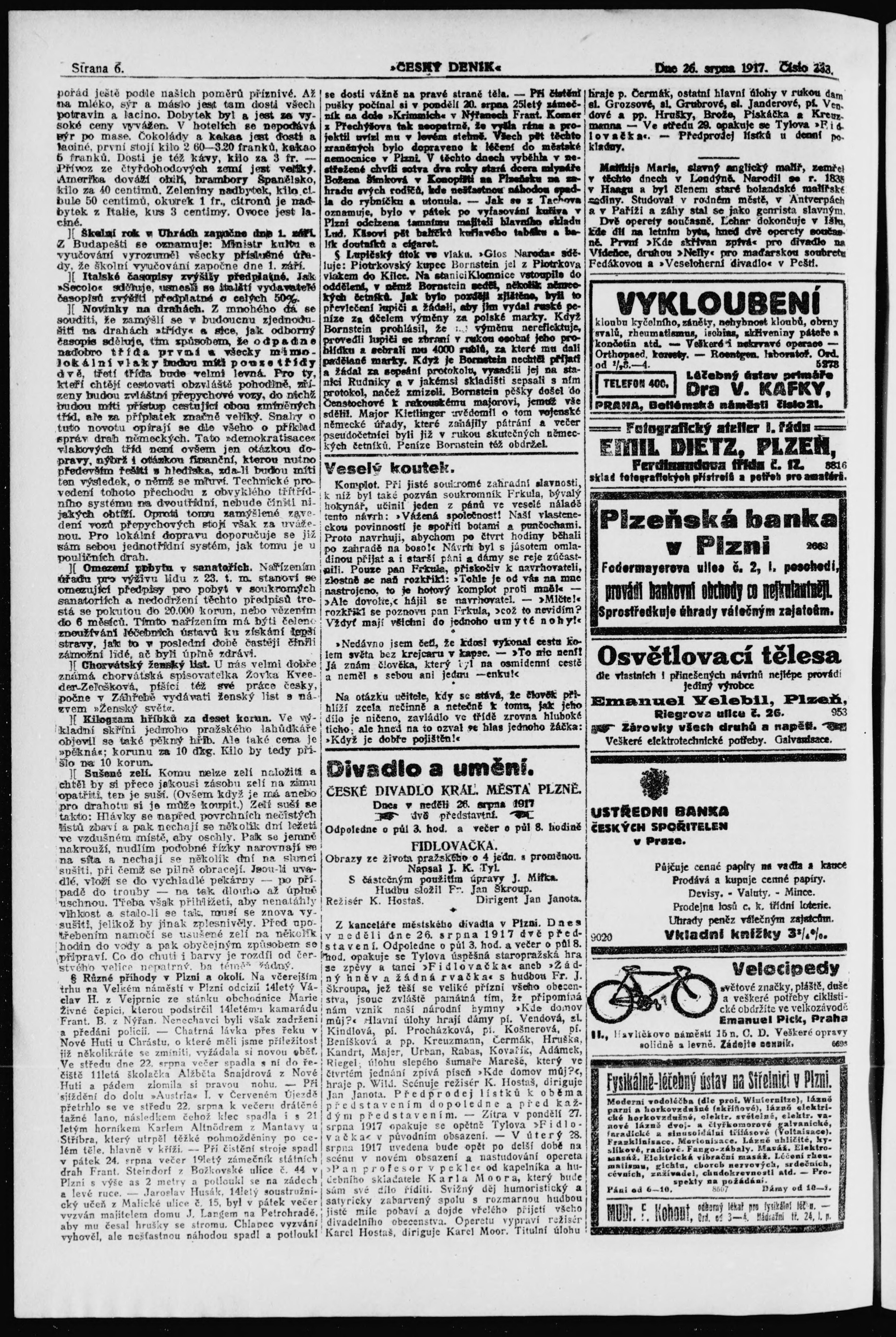 * Datum vydání výtisku: 26.8.1917 Číslo výtisku: 233