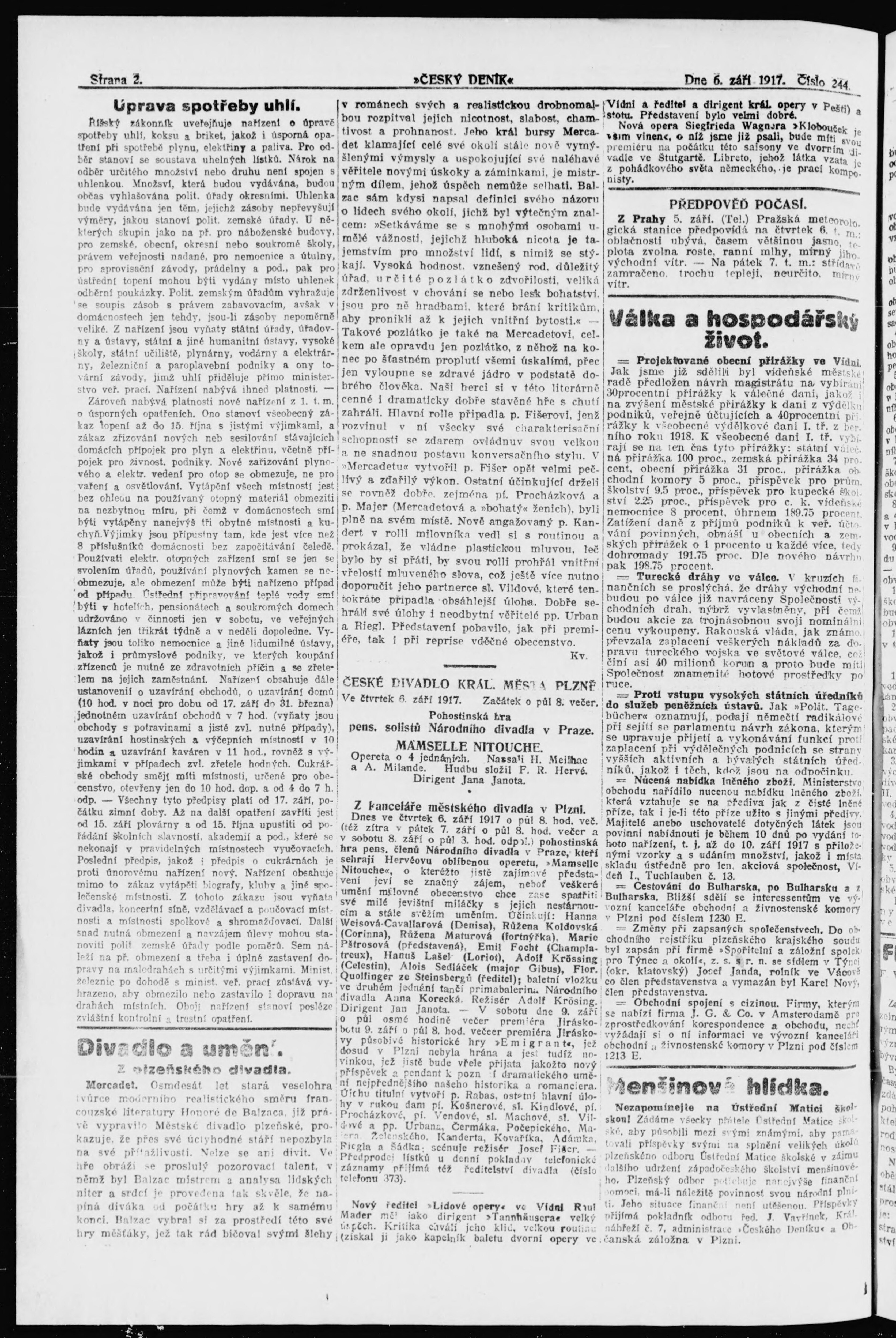 * Datum vydání výtisku: 6.9.1917 Číslo výtisku: 244