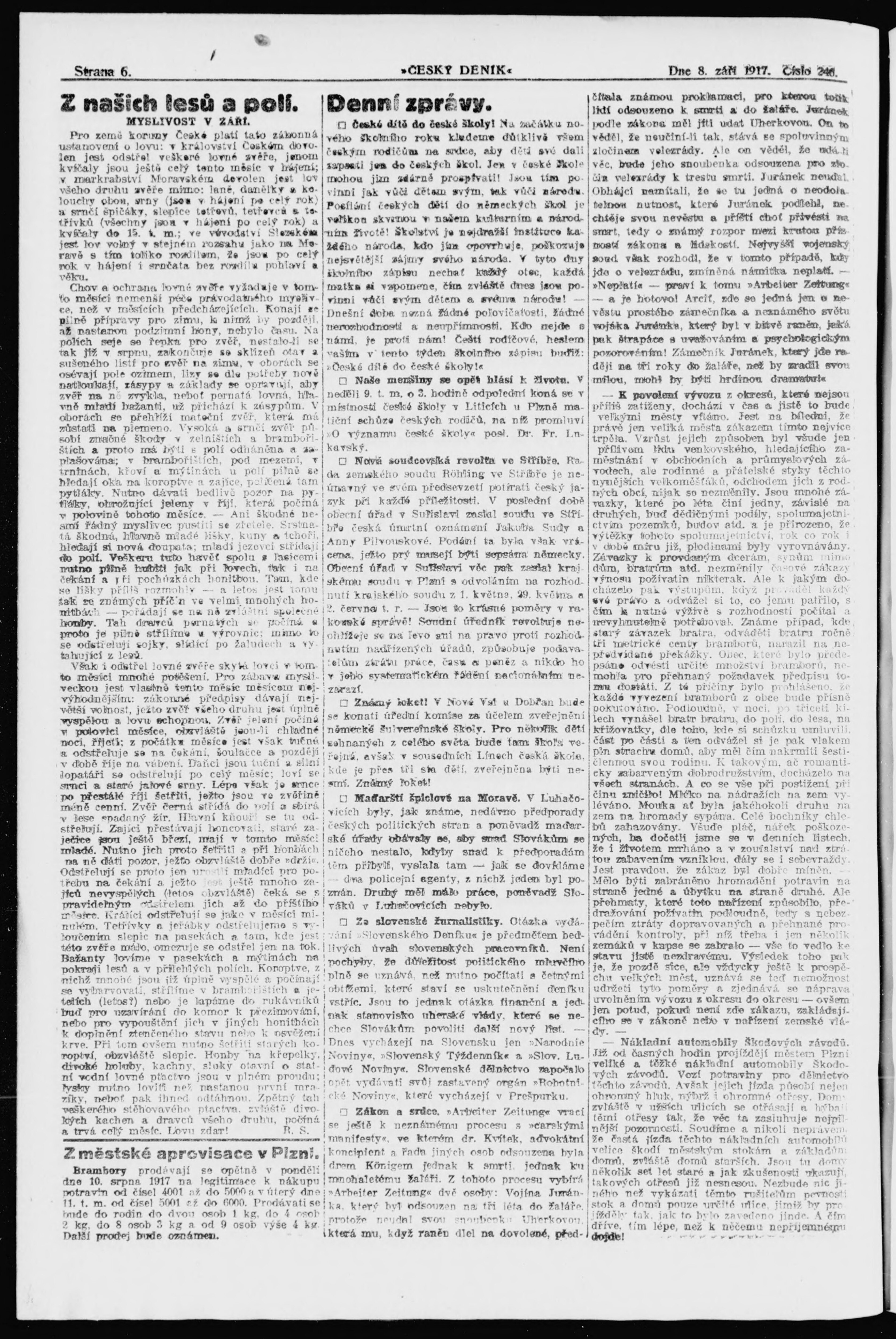 * Datum vydání výtisku: 8.9.1917 Číslo výtisku: 246