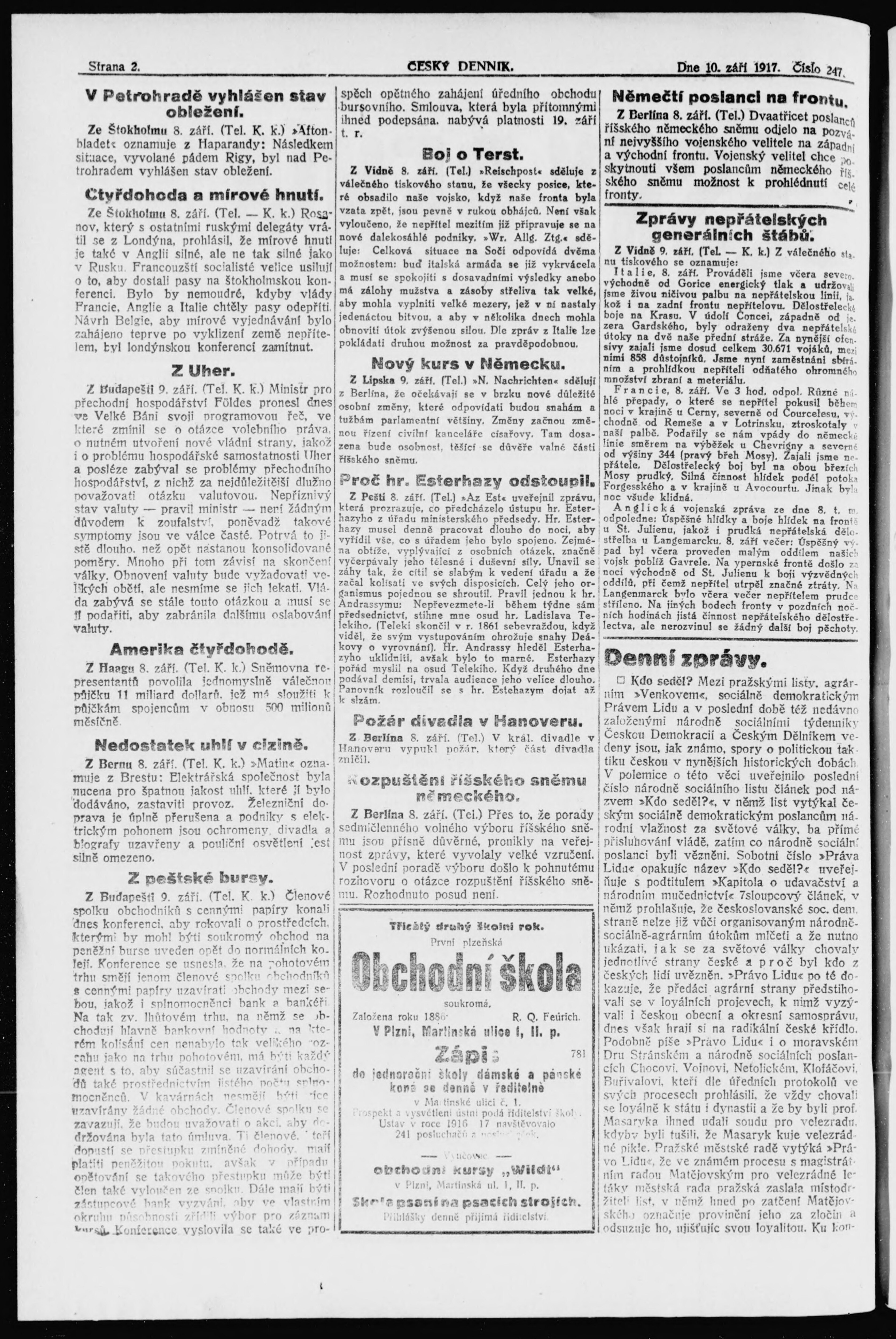 * Datum vydání výtisku: 10.9.1917 Číslo výtisku: 247