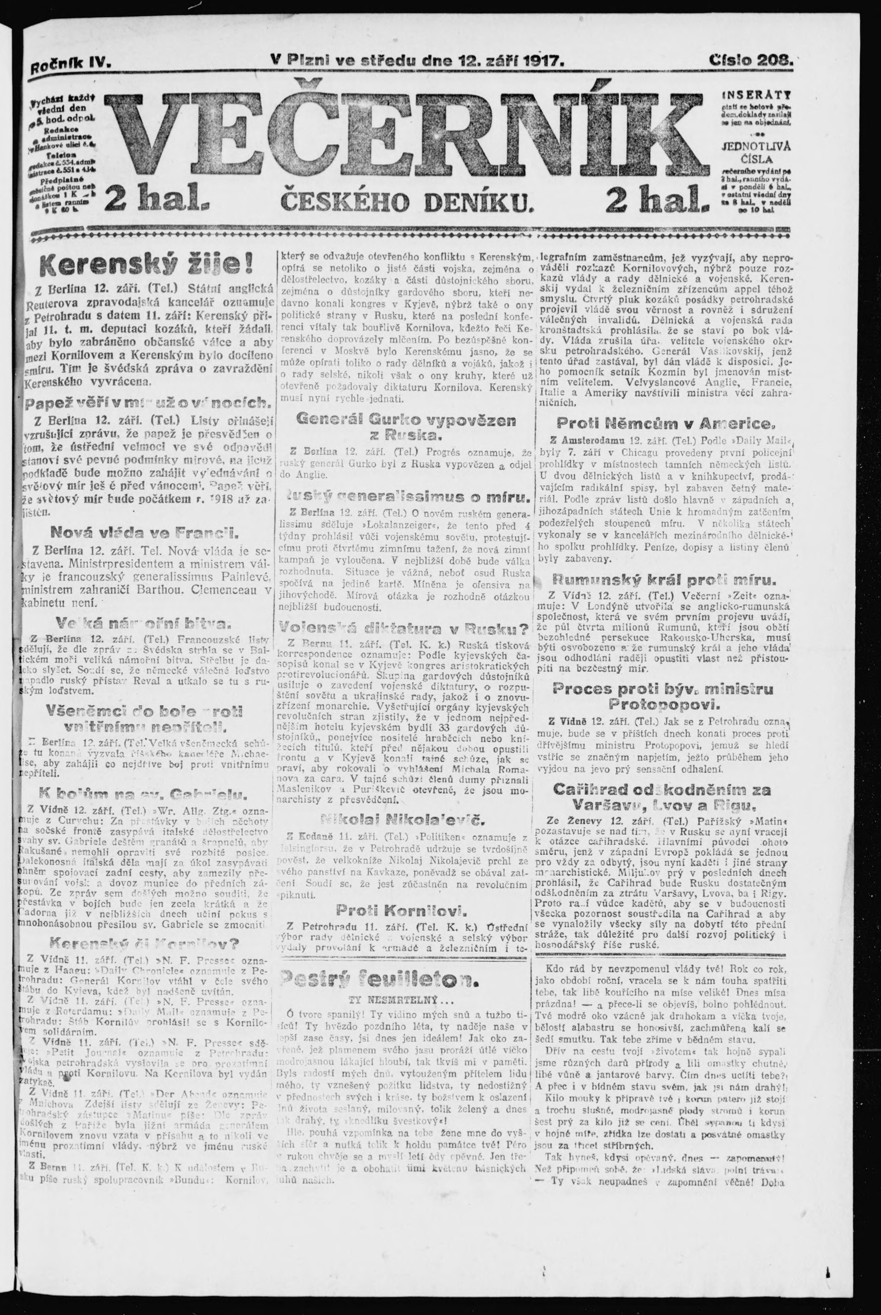 večerní vydání;