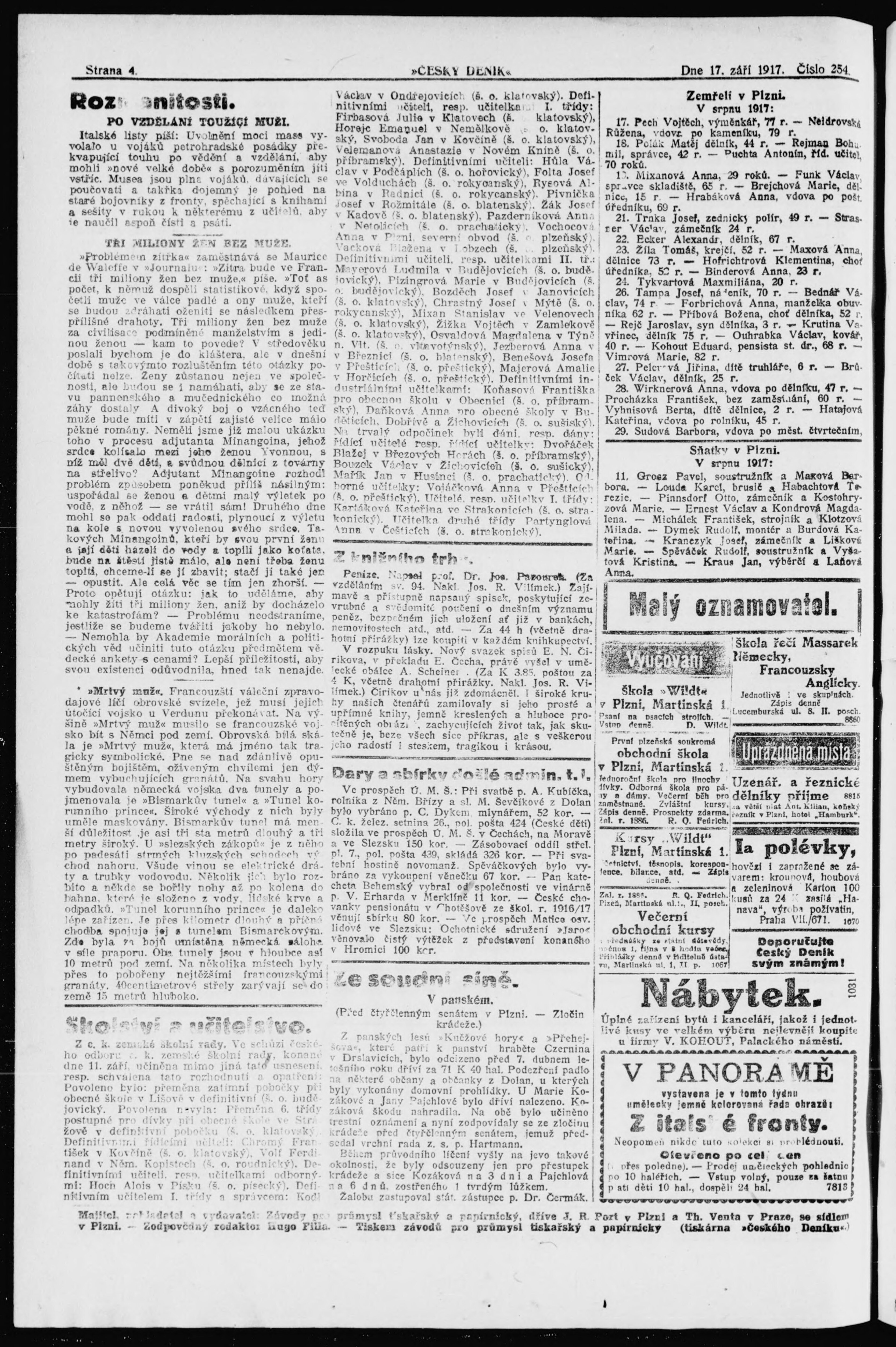 * Datum vydání výtisku: 17.9.1917 Číslo výtisku: 254