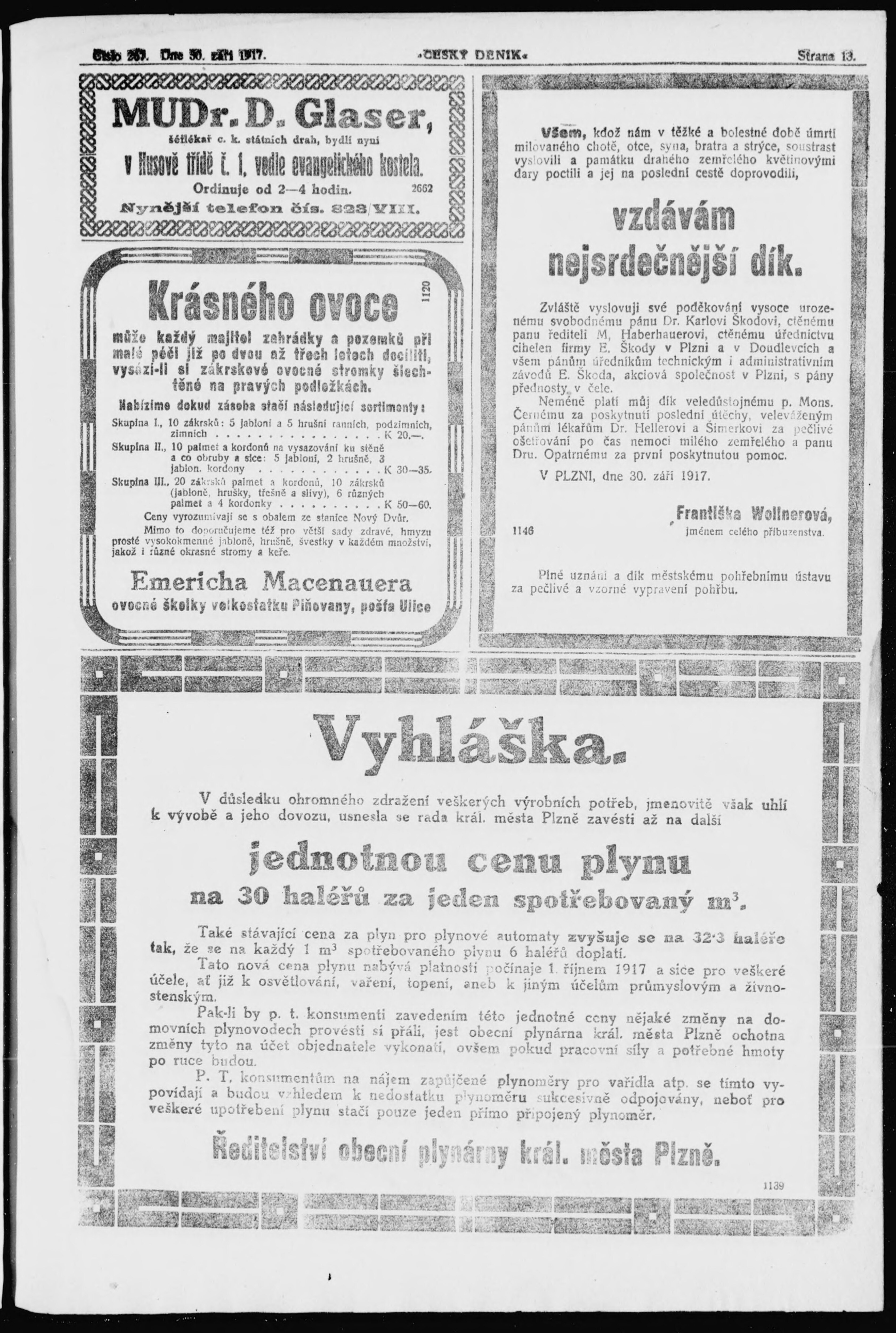 * Datum vydání výtisku: 30.9.1917 Číslo výtisku: 267