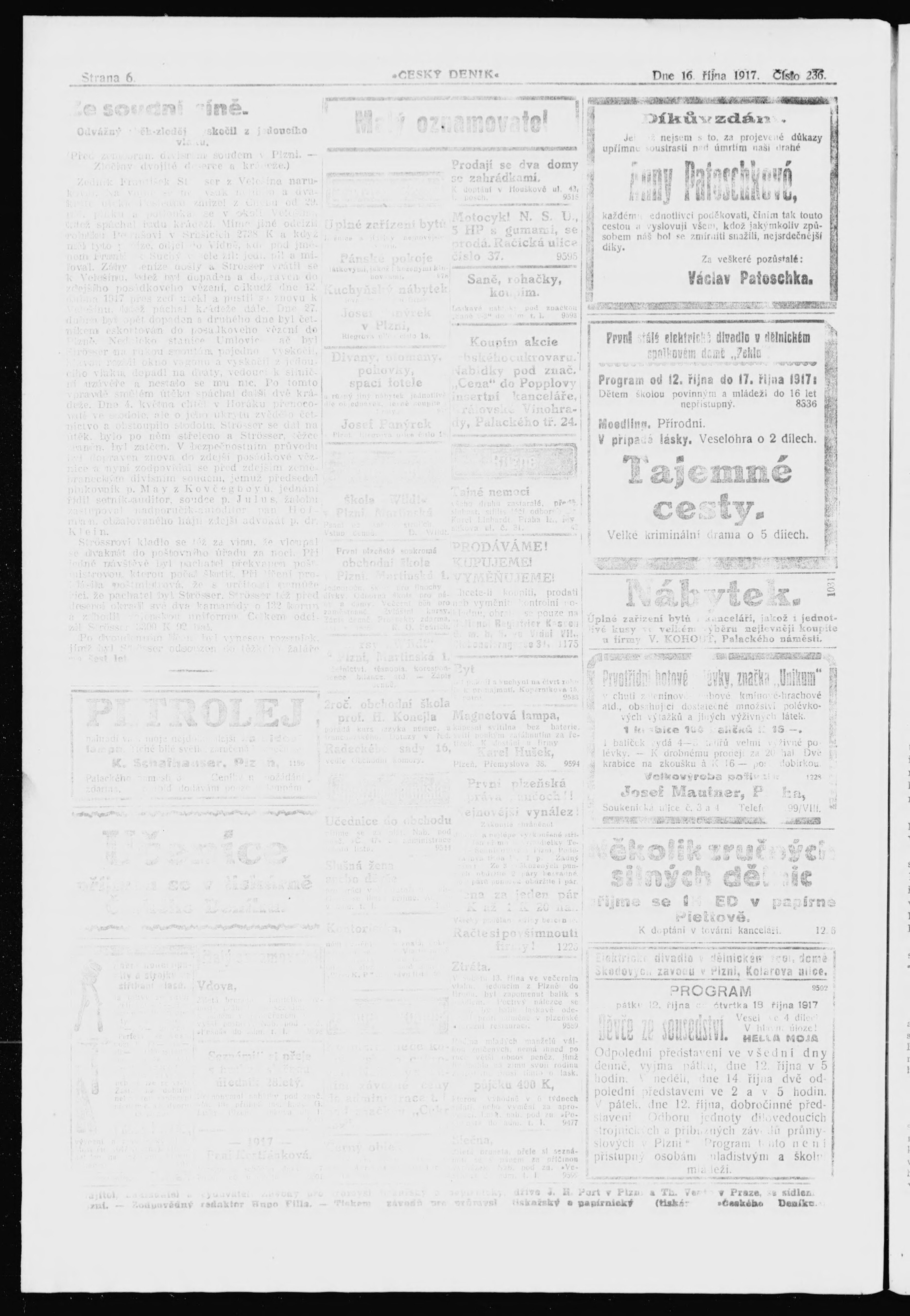 * Datum vydání výtisku: 16.10.1917 Číslo výtisku: 282
