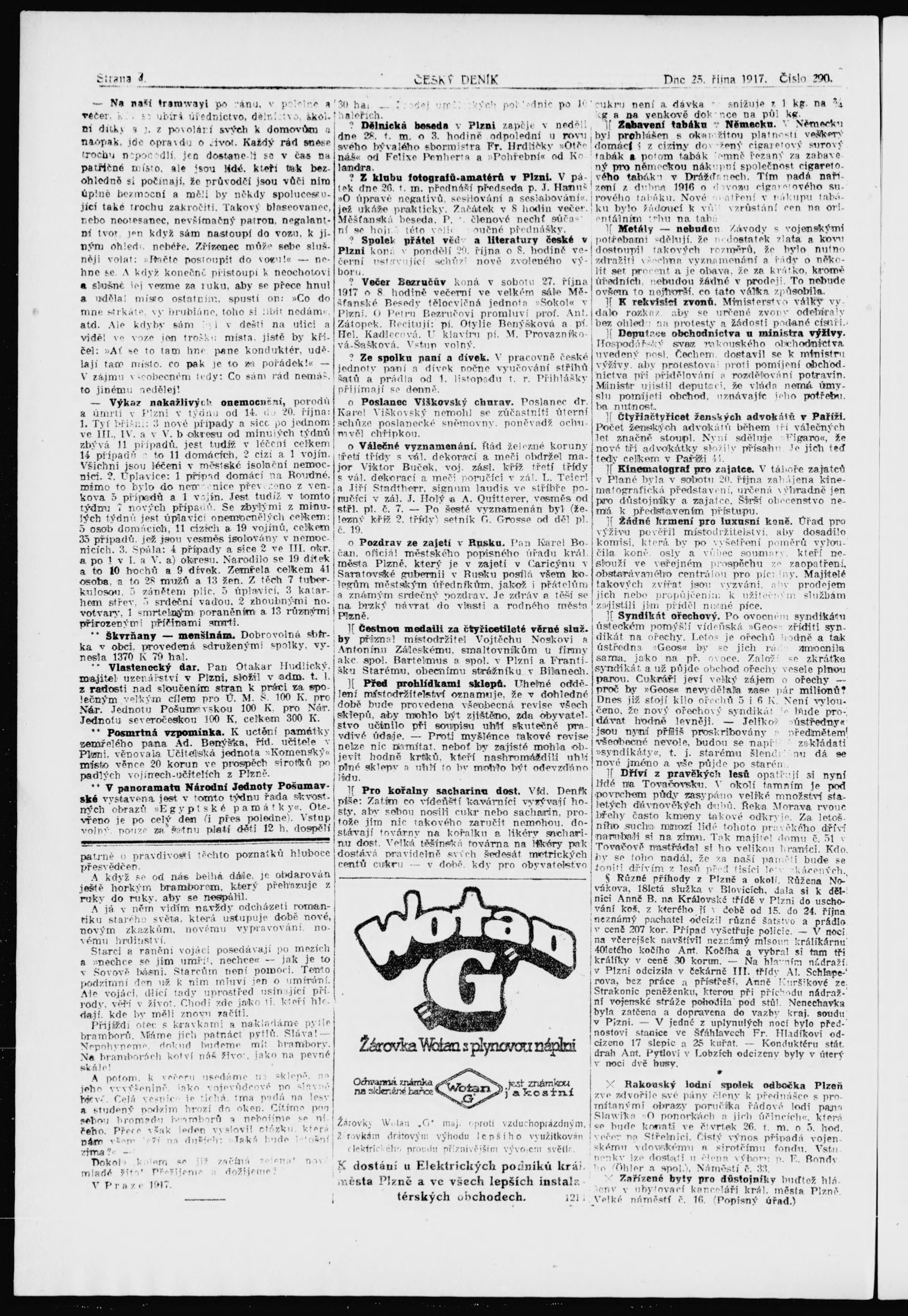 * Datum vydání výtisku: 25.10.1917 Číslo výtisku: 290