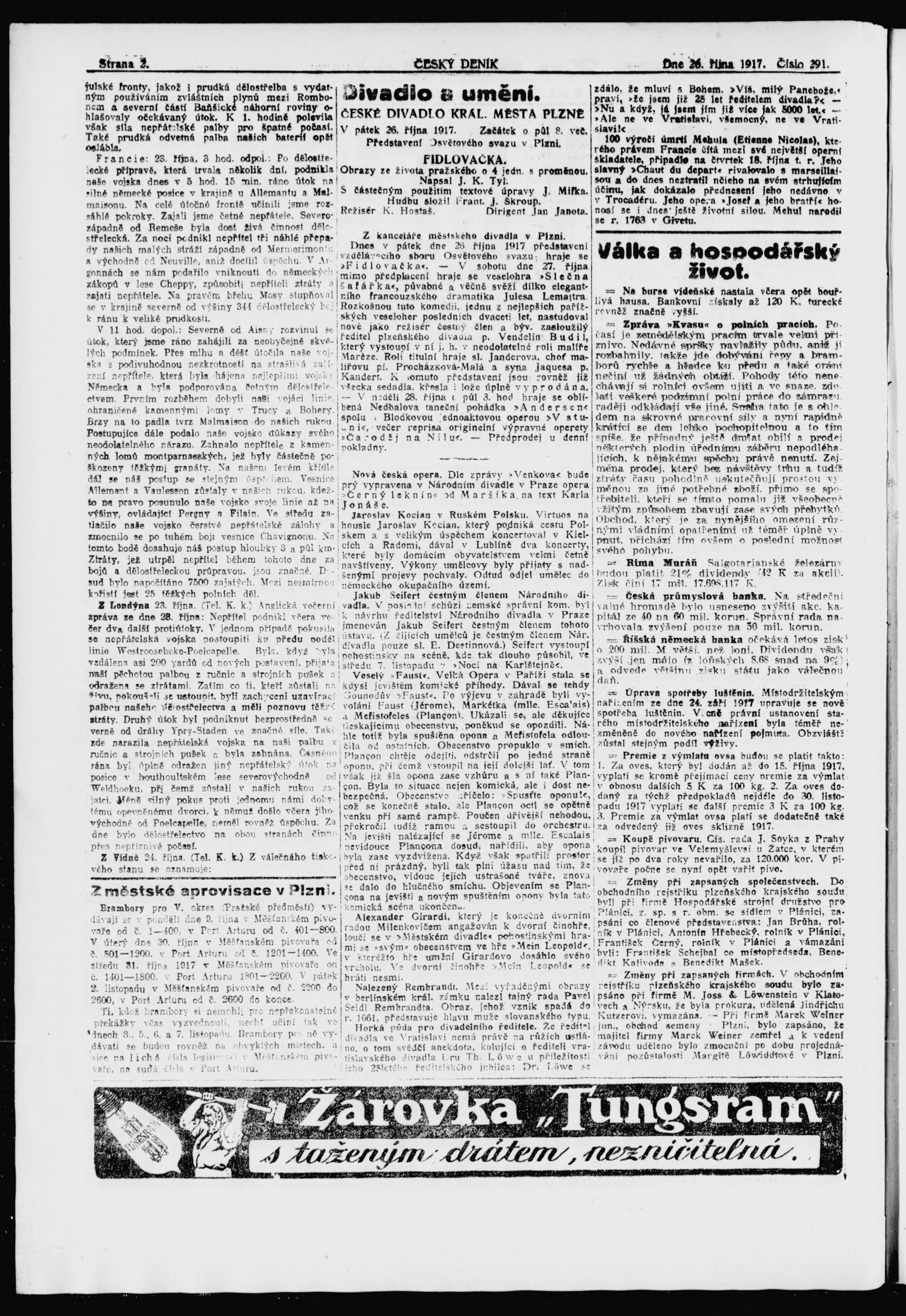 * Datum vydání výtisku: 26.10.1917 Číslo výtisku: 291