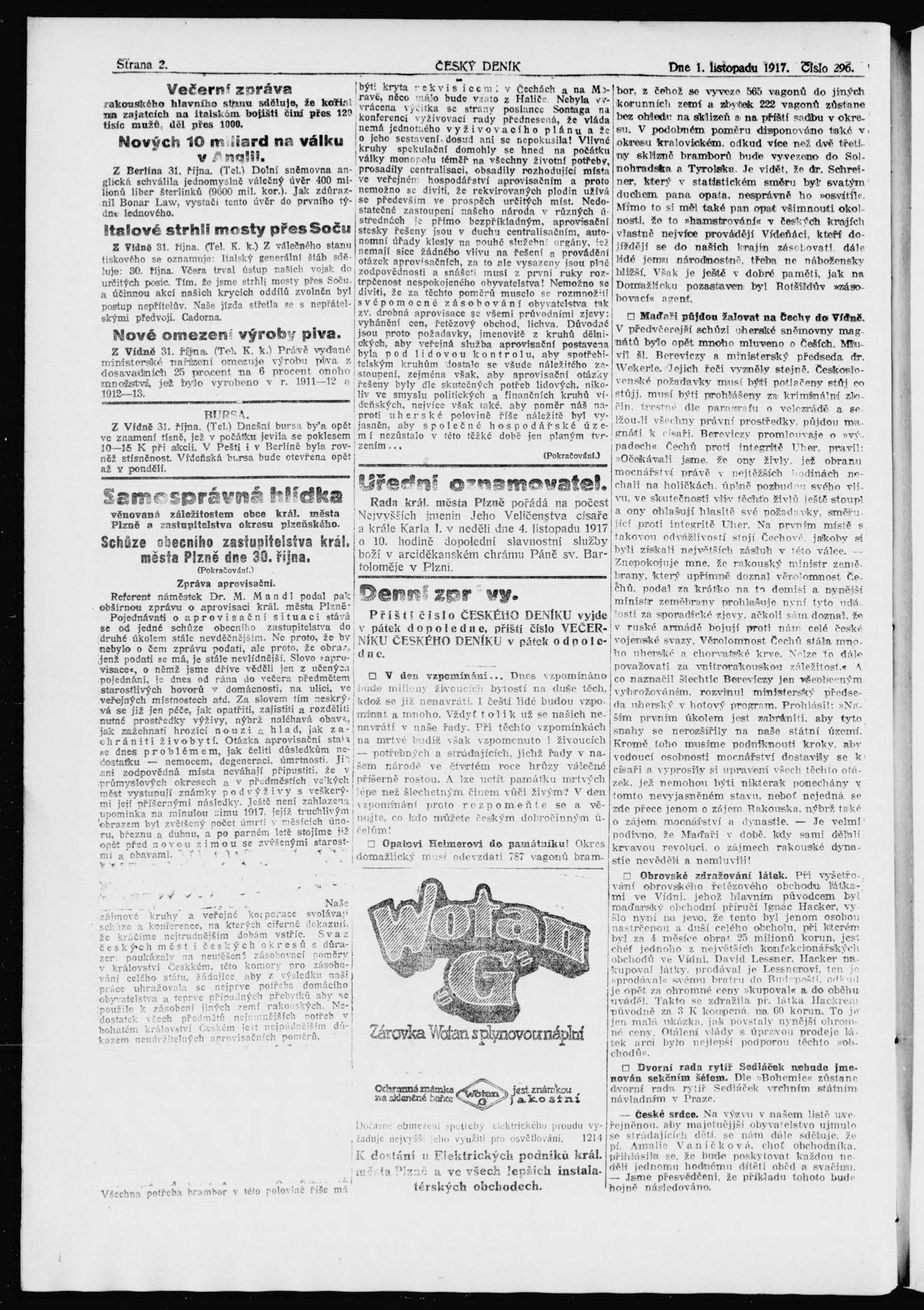 * Datum vydání výtisku: 1.11.1917 Číslo výtisku: 296