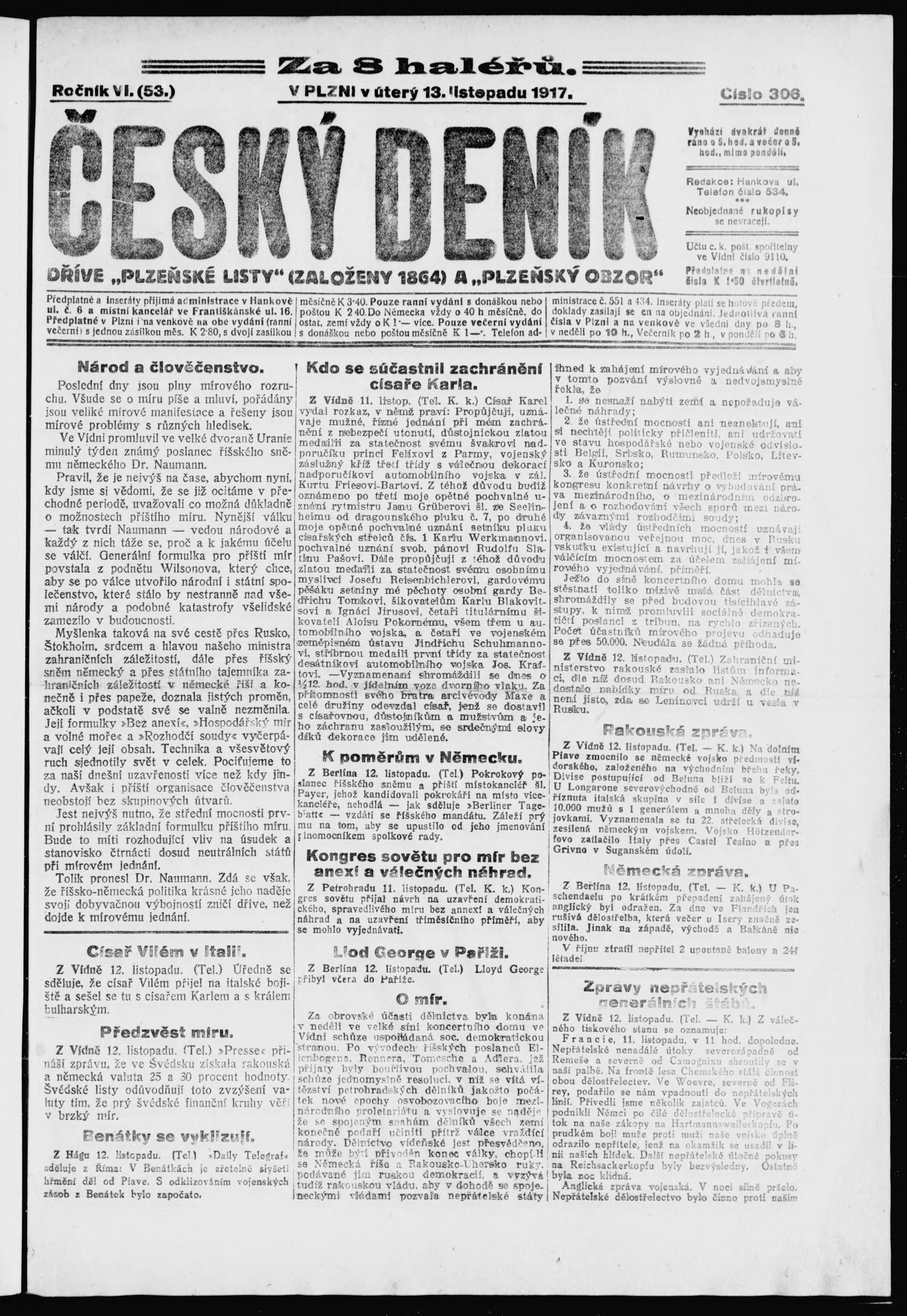 * Datum vydání výtisku: 13.11.1917 Číslo výtisku: 306