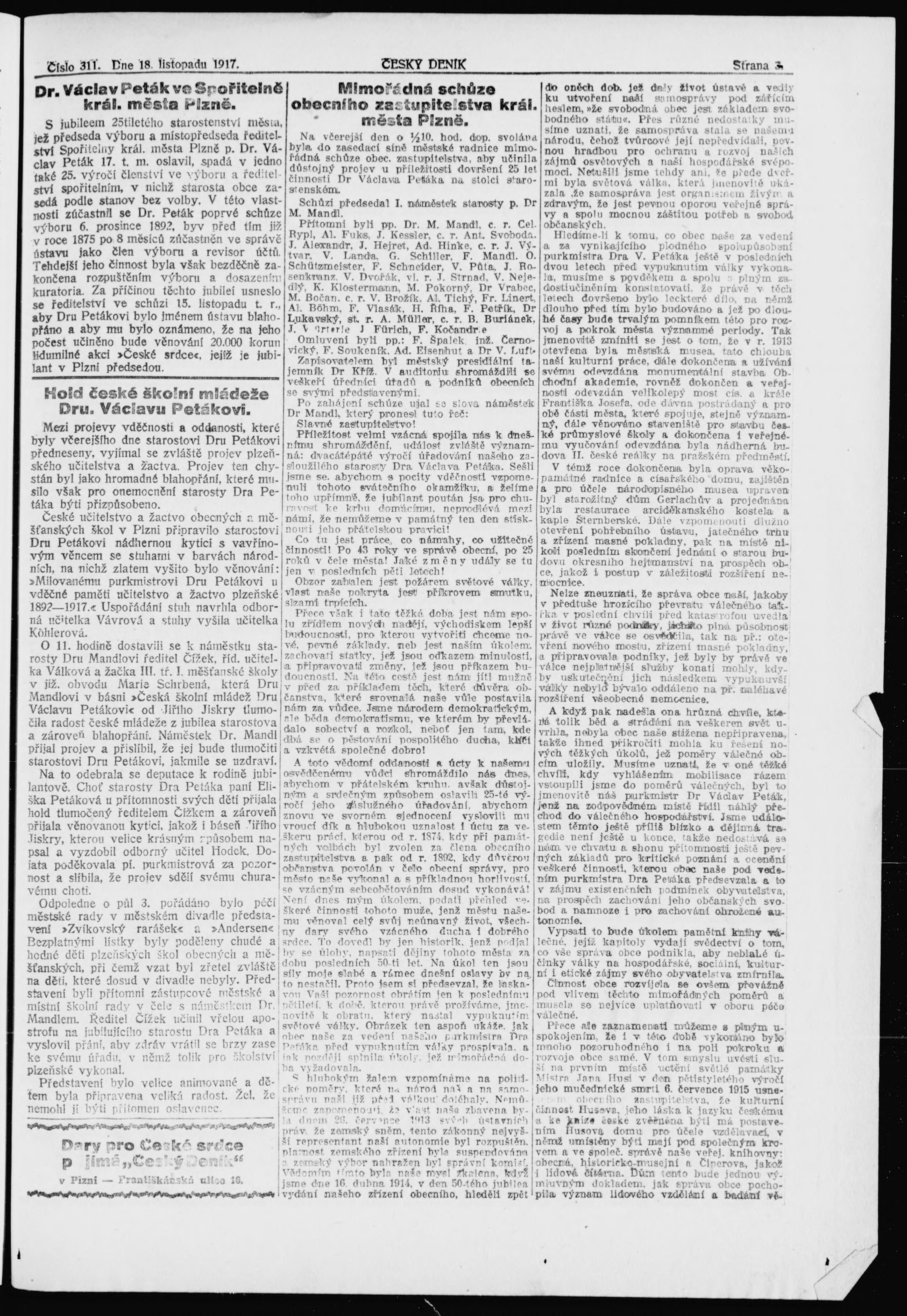 * Datum vydání výtisku: 18.11.1917 Číslo výtisku: 311
