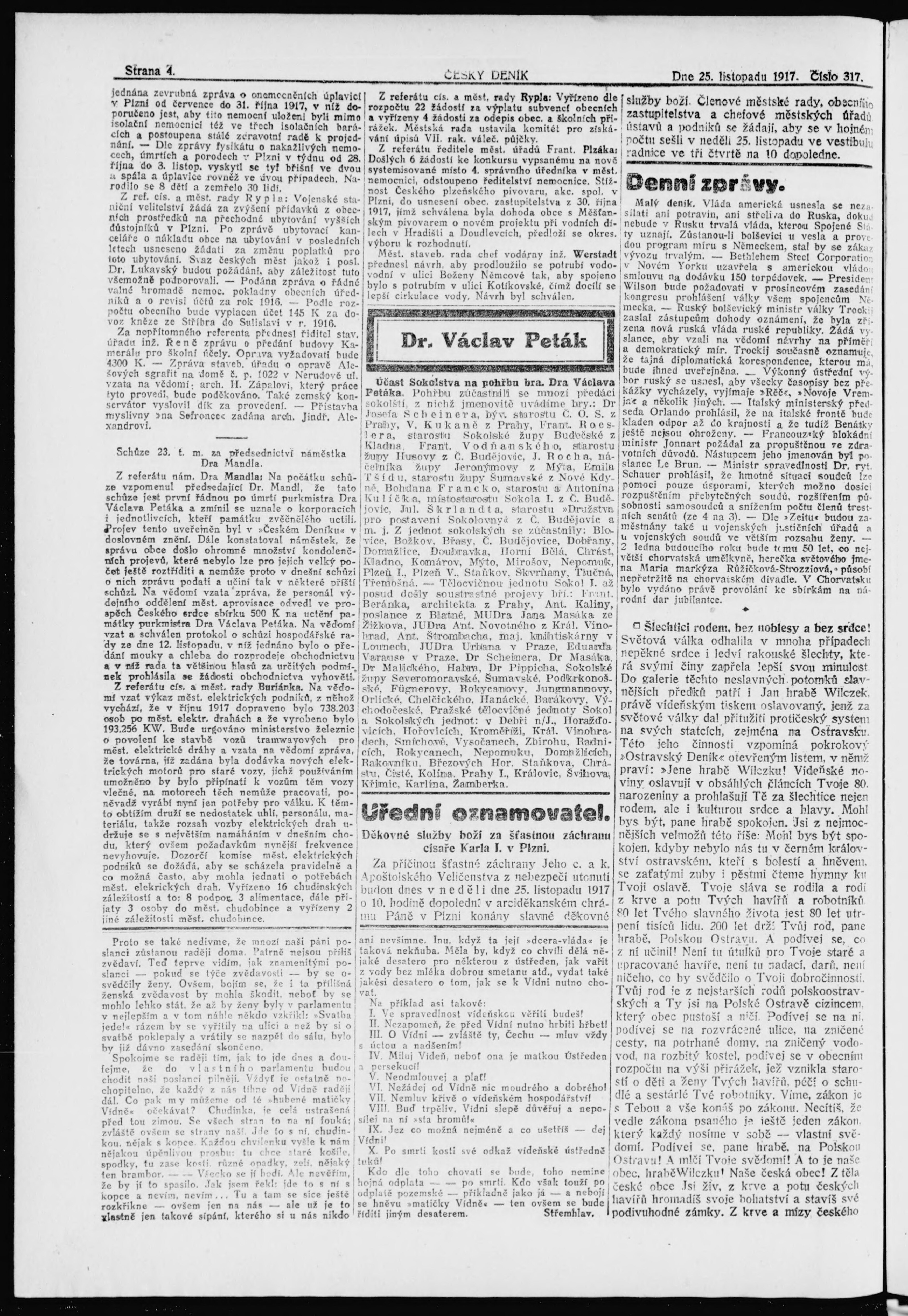 * Datum vydání výtisku: 25.11.1917 Číslo výtisku: 217