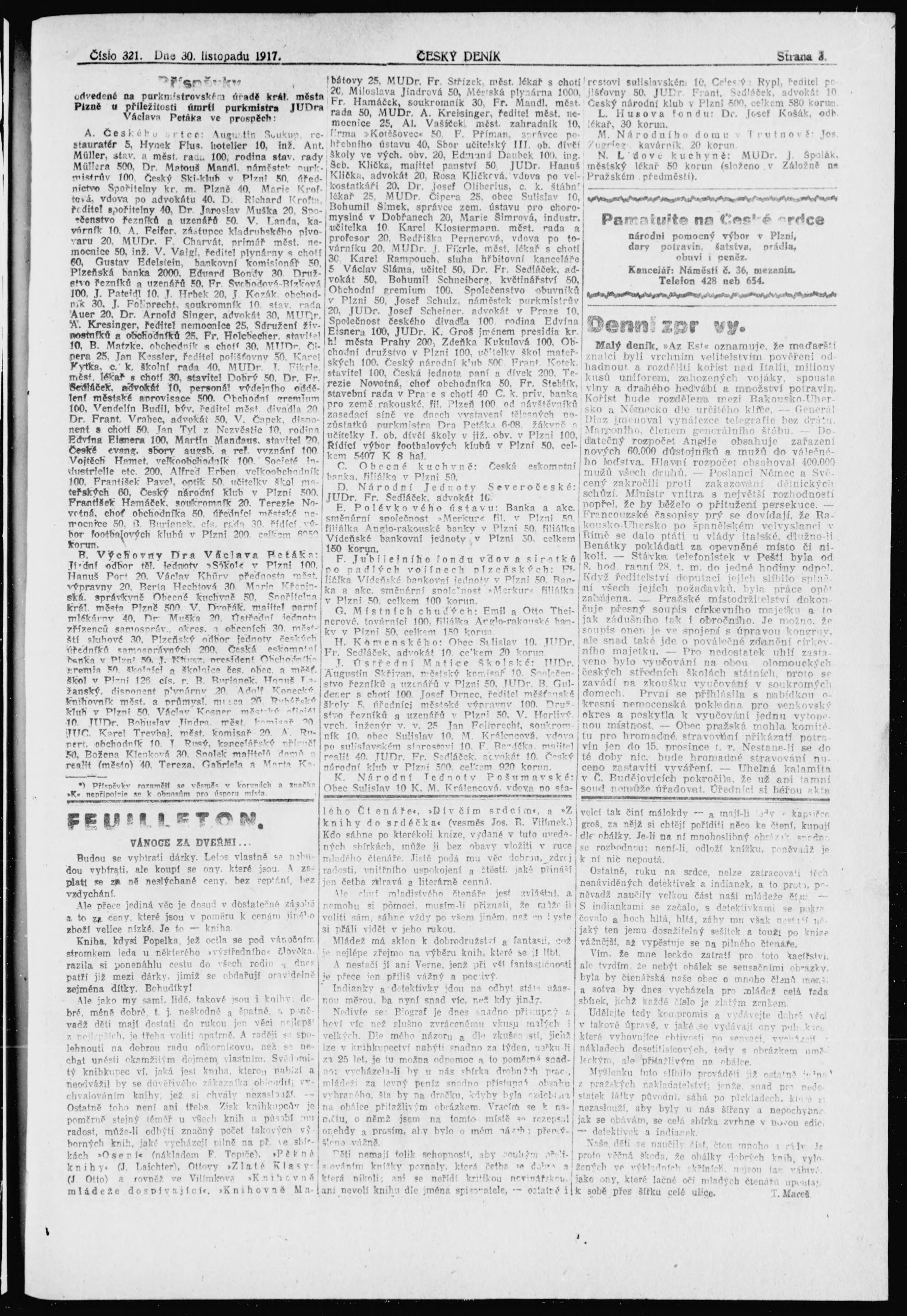 * Datum vydání výtisku: 30.11.1917 Číslo výtisku: 321