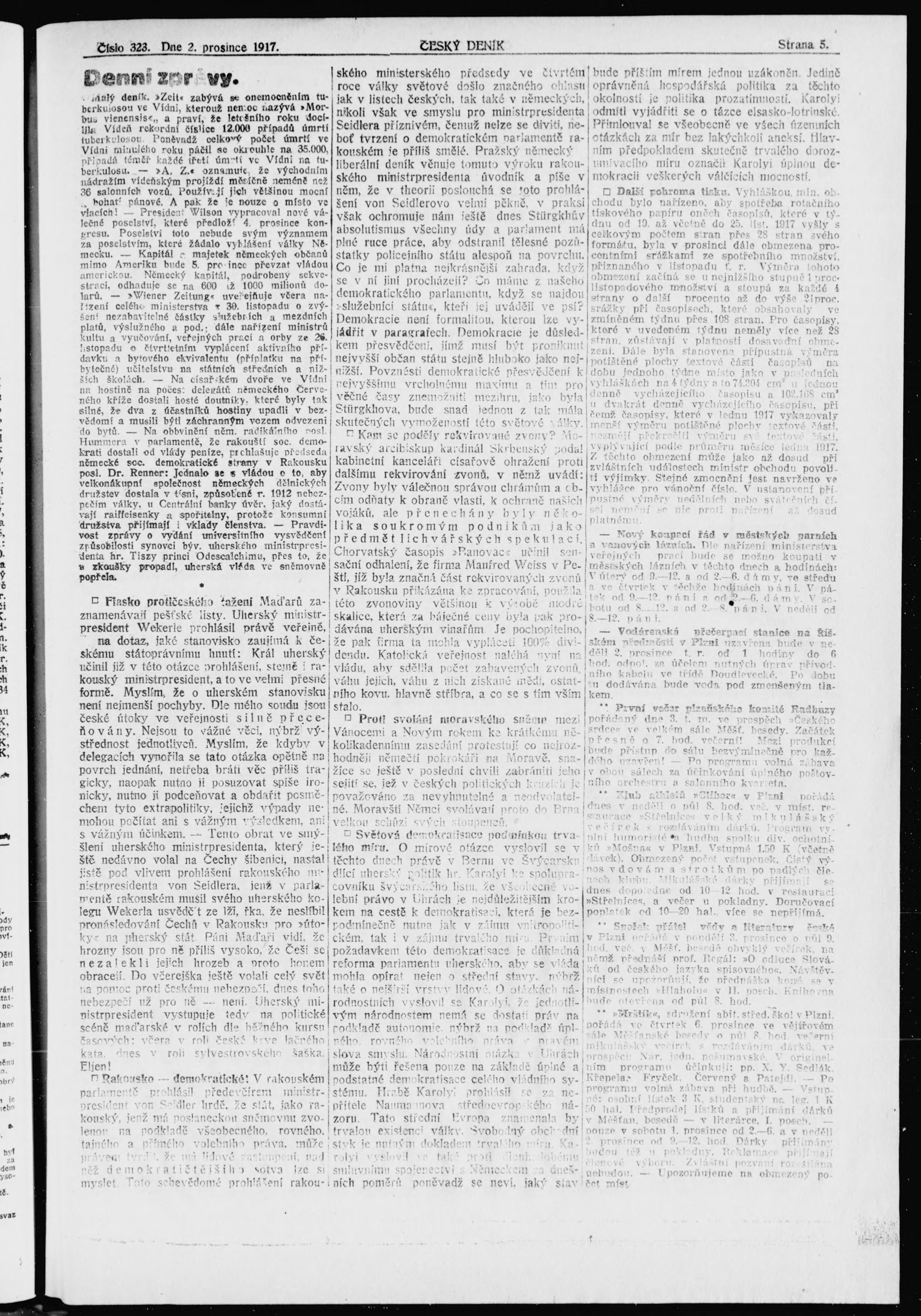 * Datum vydání výtisku: 2.12.1917 Číslo výtisku: 323