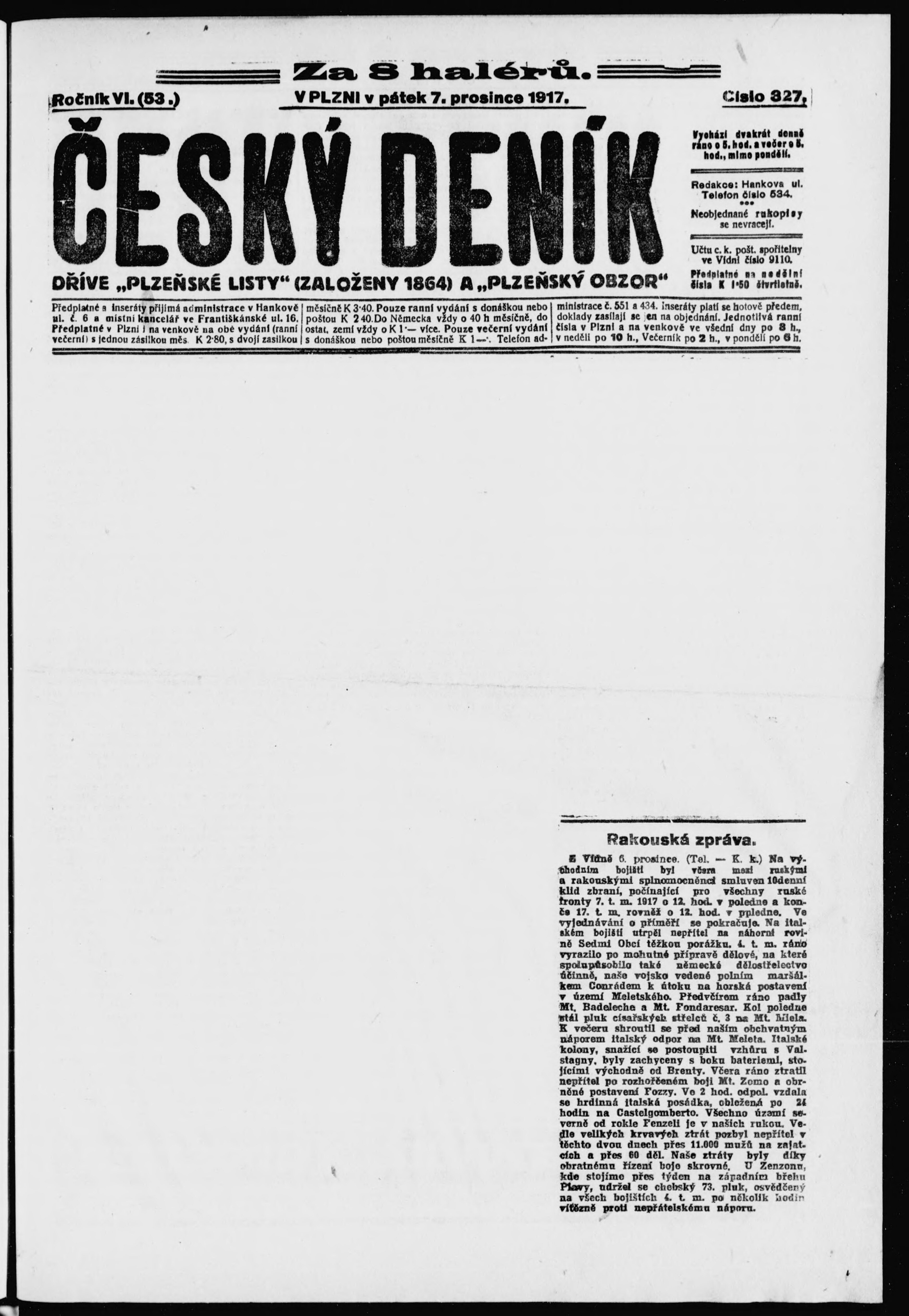 * Datum vydání výtisku: 7.12.1917 Číslo výtisku: 327