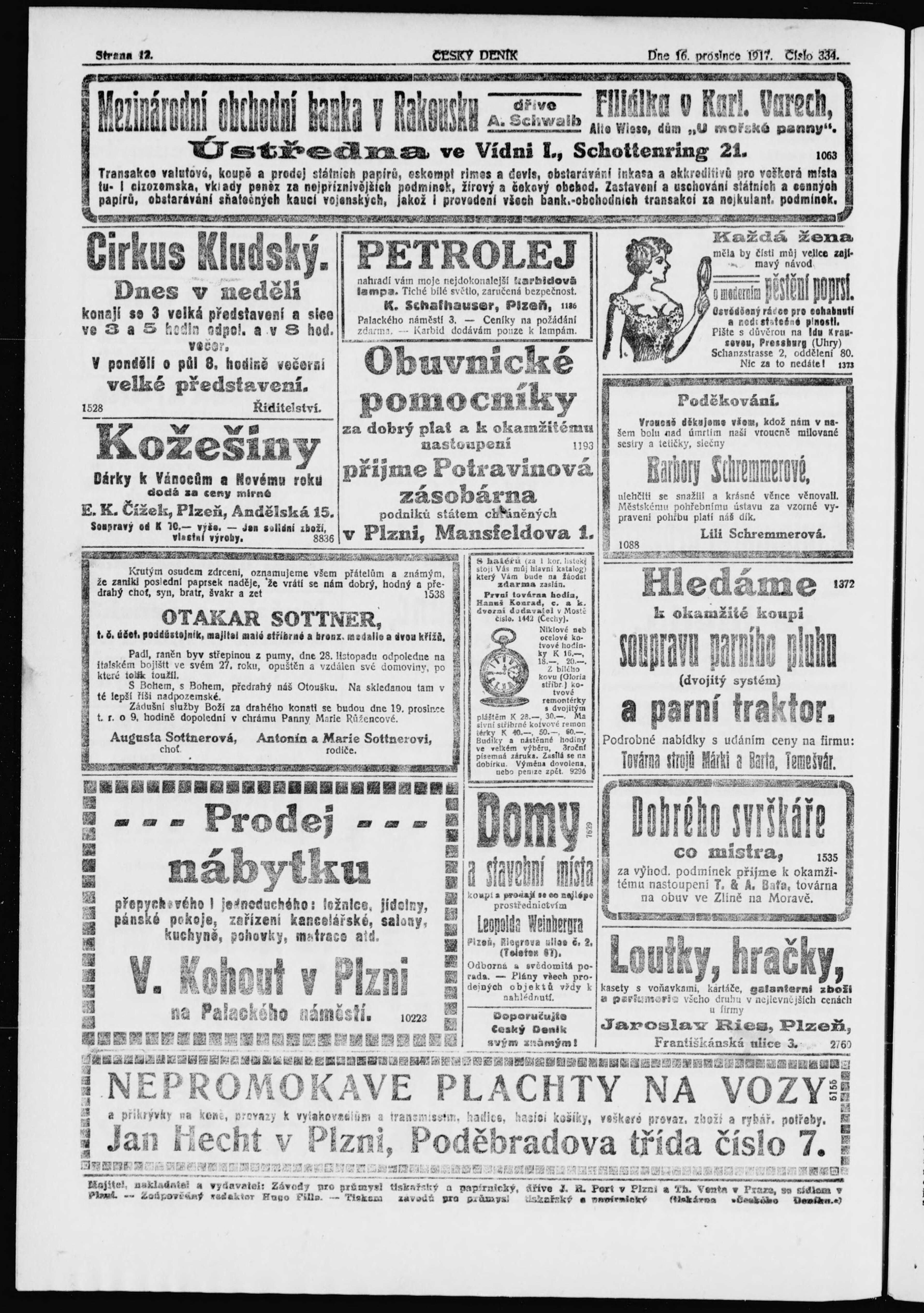 * Datum vydání výtisku: 16.12.1917 Číslo výtisku: 334