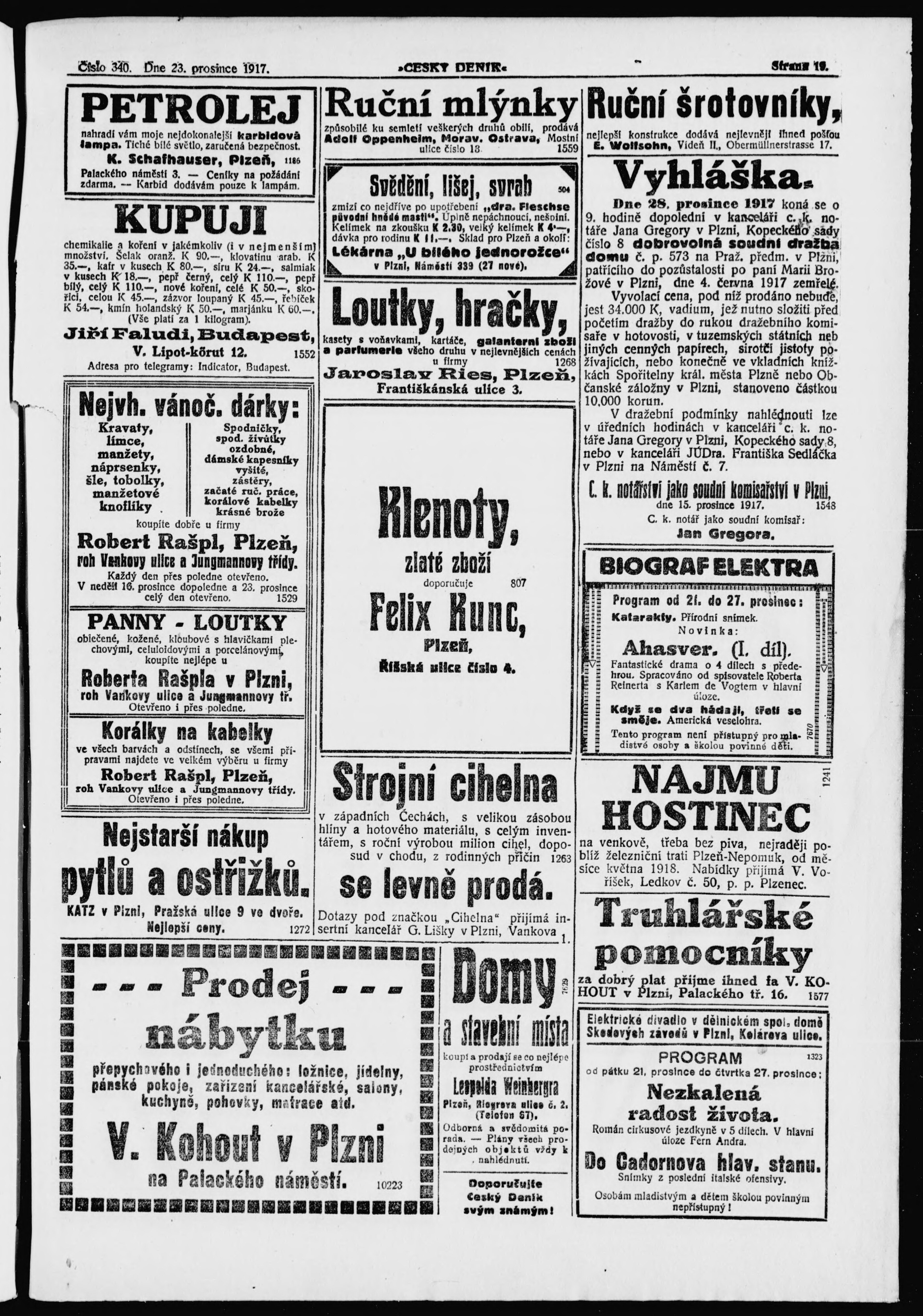 * Datum vydání výtisku: 23.12.1917 Číslo výtisku: 340