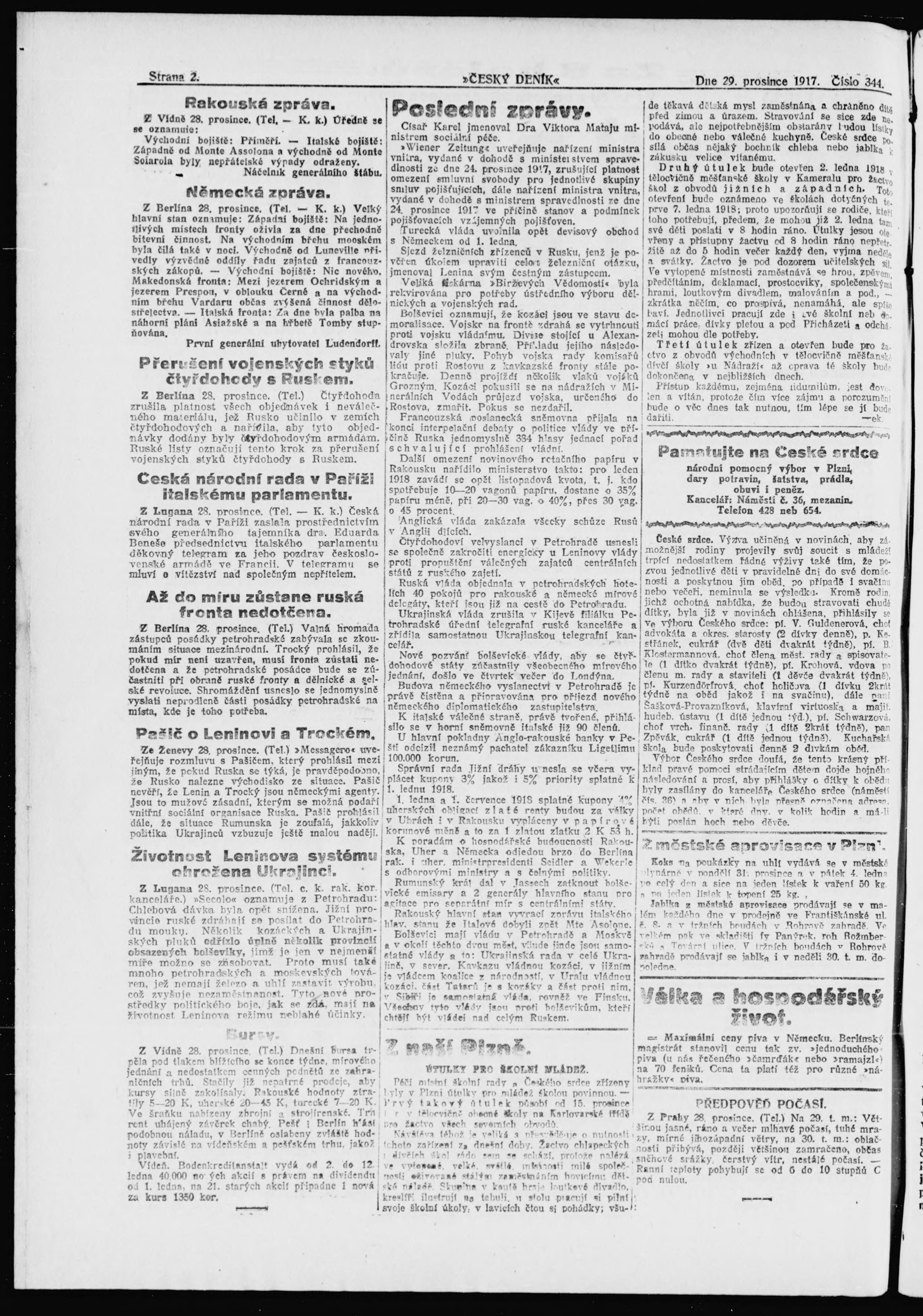 * Datum vydání výtisku: 29.12.1917 Číslo výtisku: 344