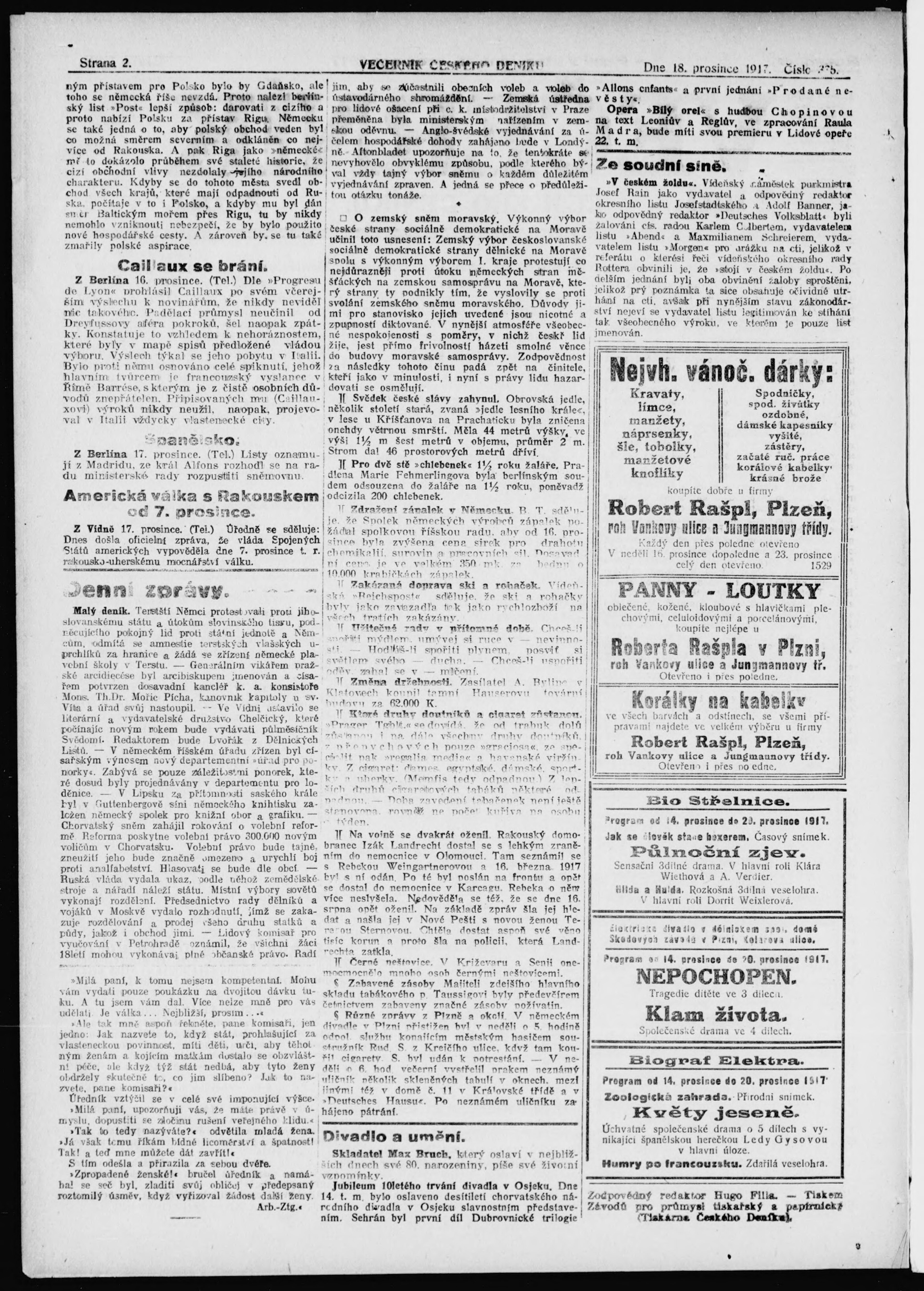 * Datum vydání výtisku: 18.12.1917 Číslo výtisku: 288 Poznámky k výtisku: večerní vydání;
