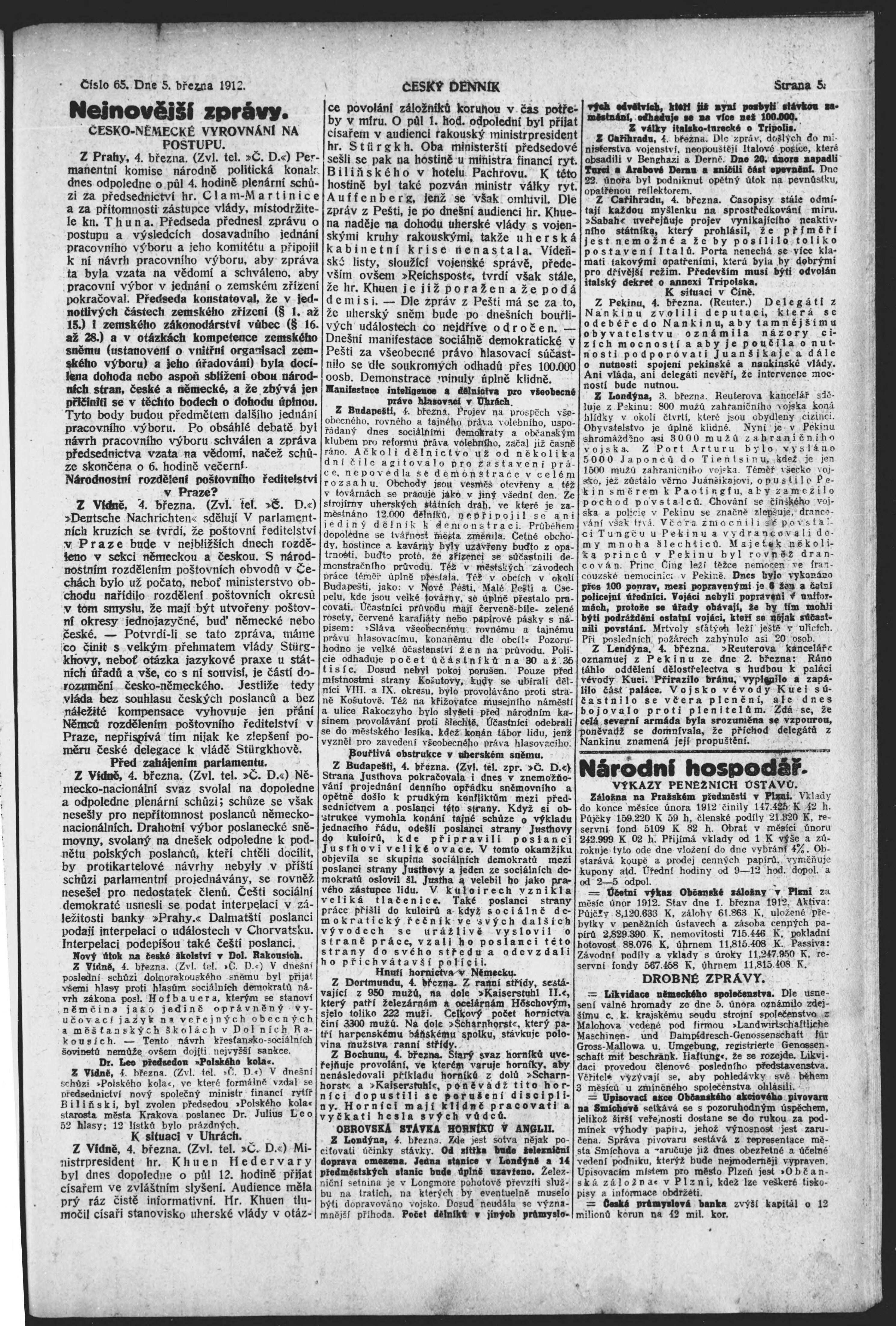* Datum vydání výtisku: 5.3.1912 Číslo výtisku: 65
