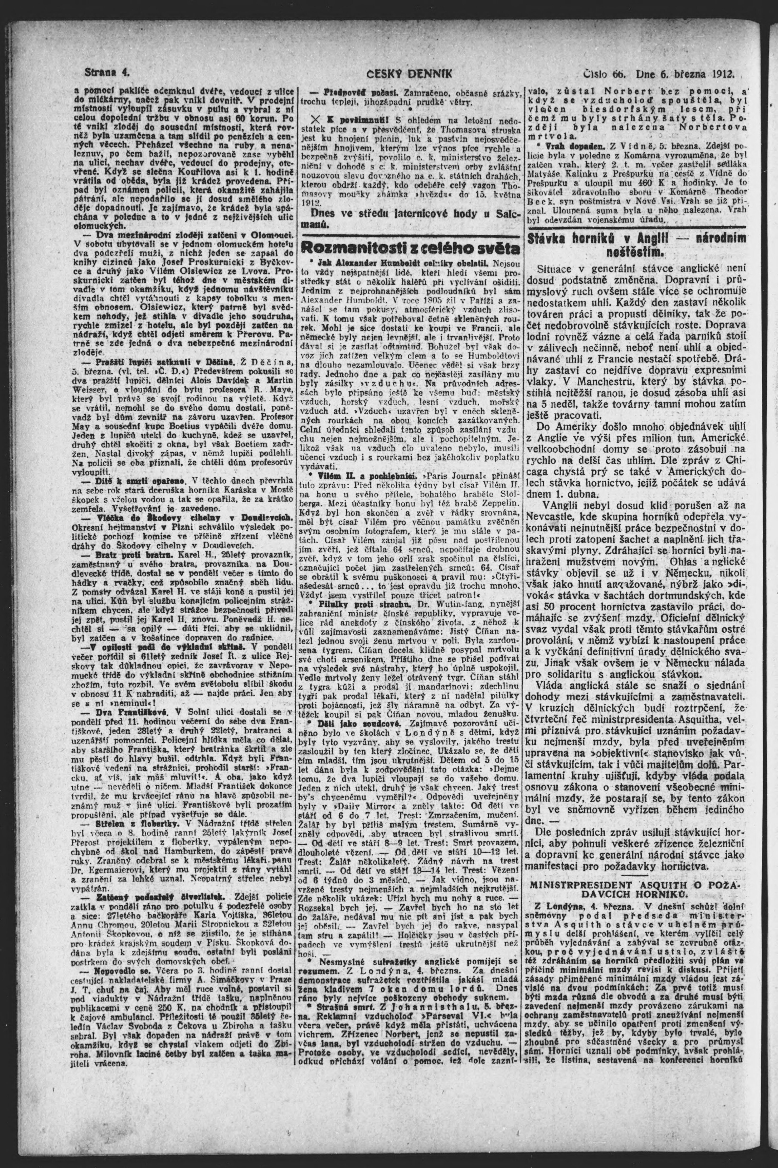 * Datum vydání výtisku: 6.3.1912 Číslo výtisku: 66