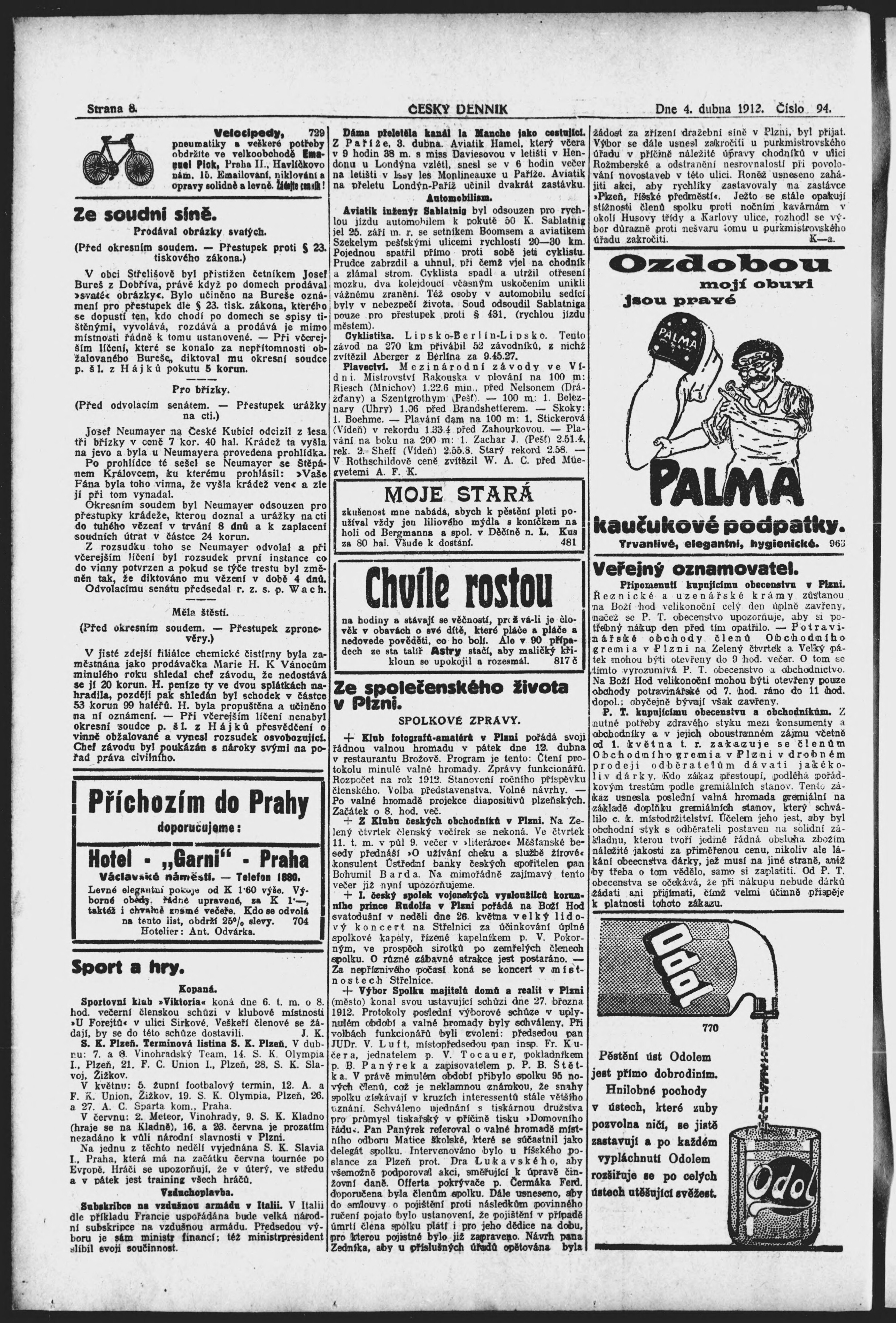 * Datum vydání výtisku: 4.4.1912 Číslo výtisku: 94