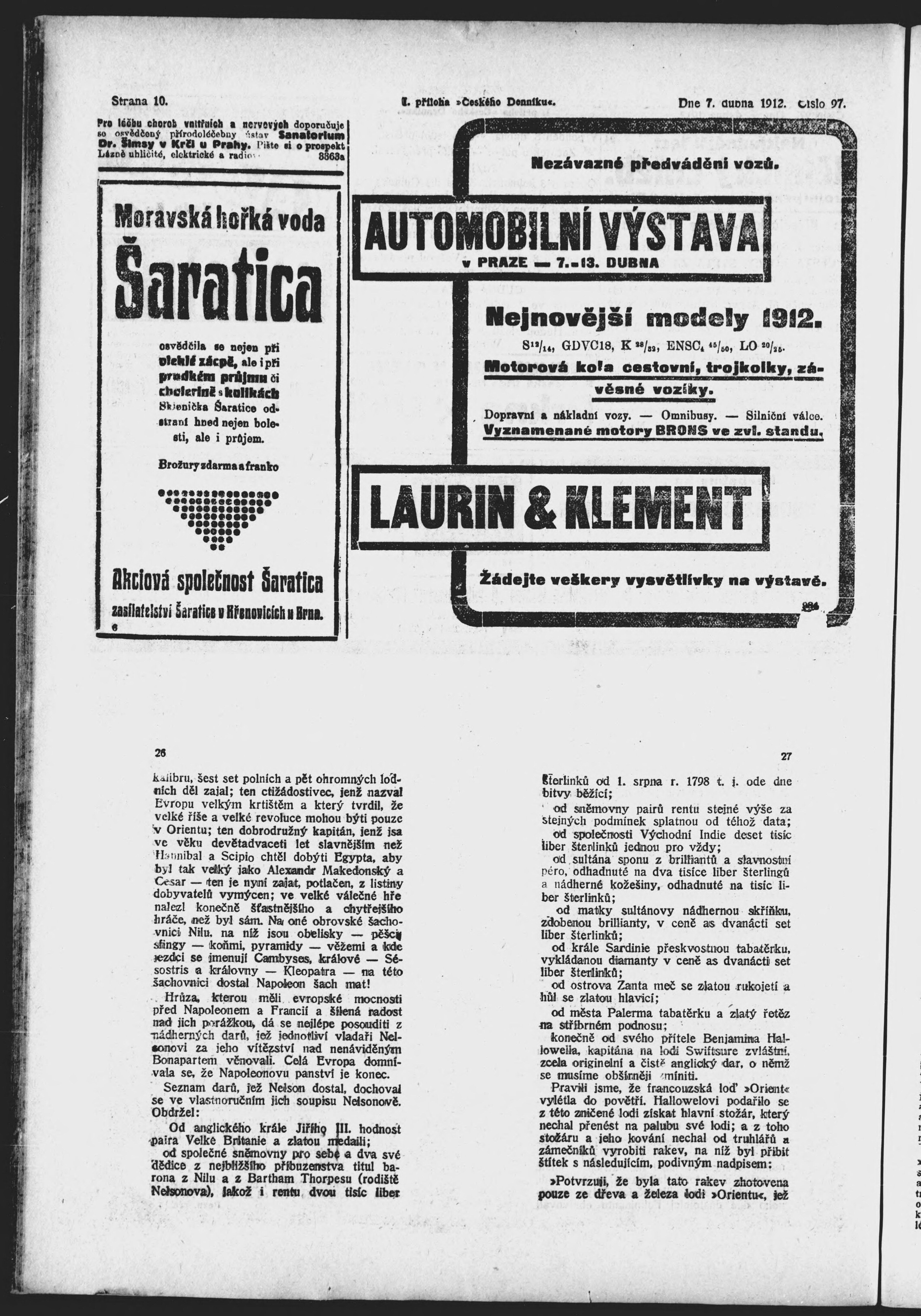 * Datum vydání výtisku: 7.4.1912 Číslo výtisku: 97 Typ výtisku: příloha