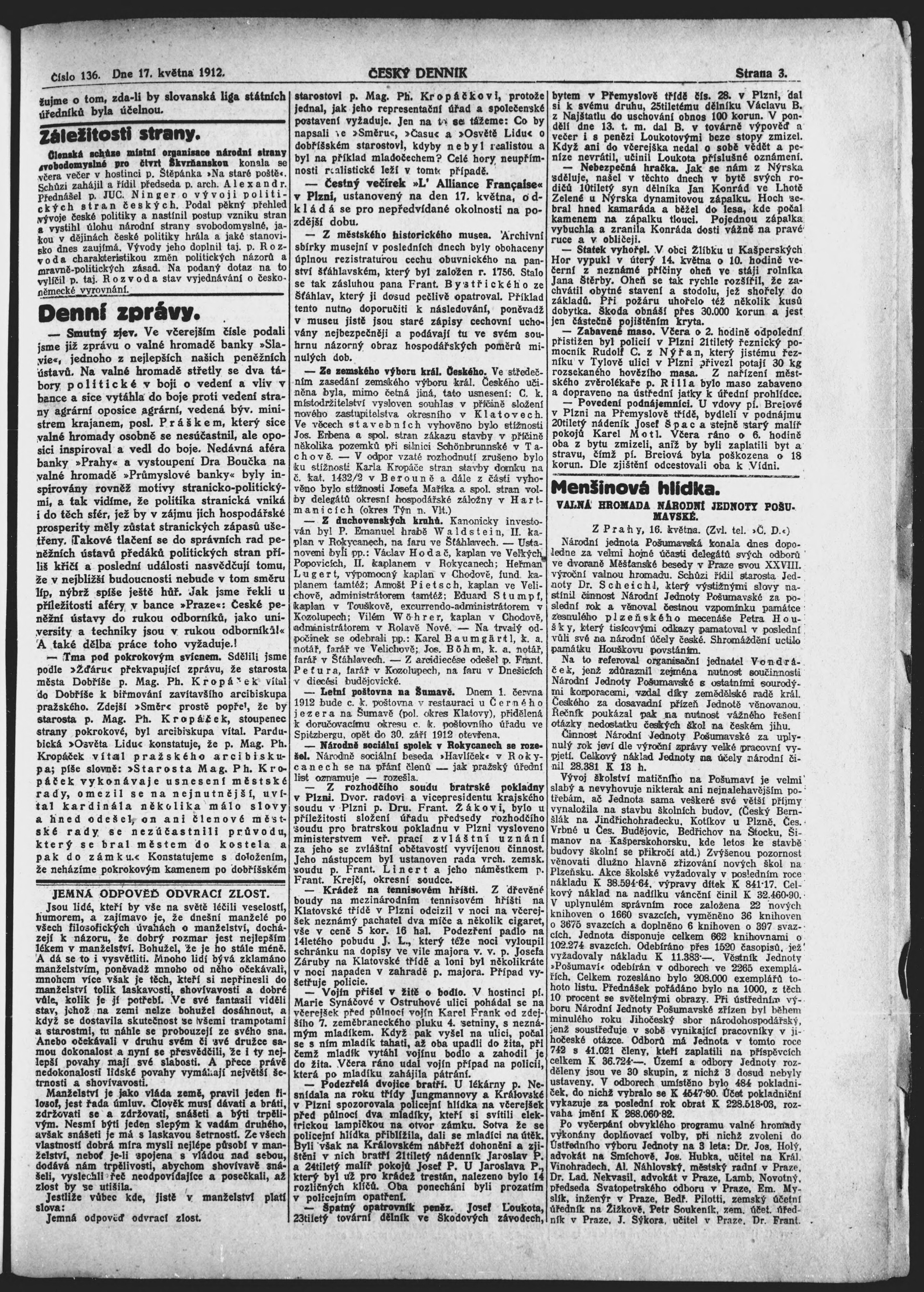 * Datum vydání výtisku: 17.5.1912 Číslo výtisku: 136
