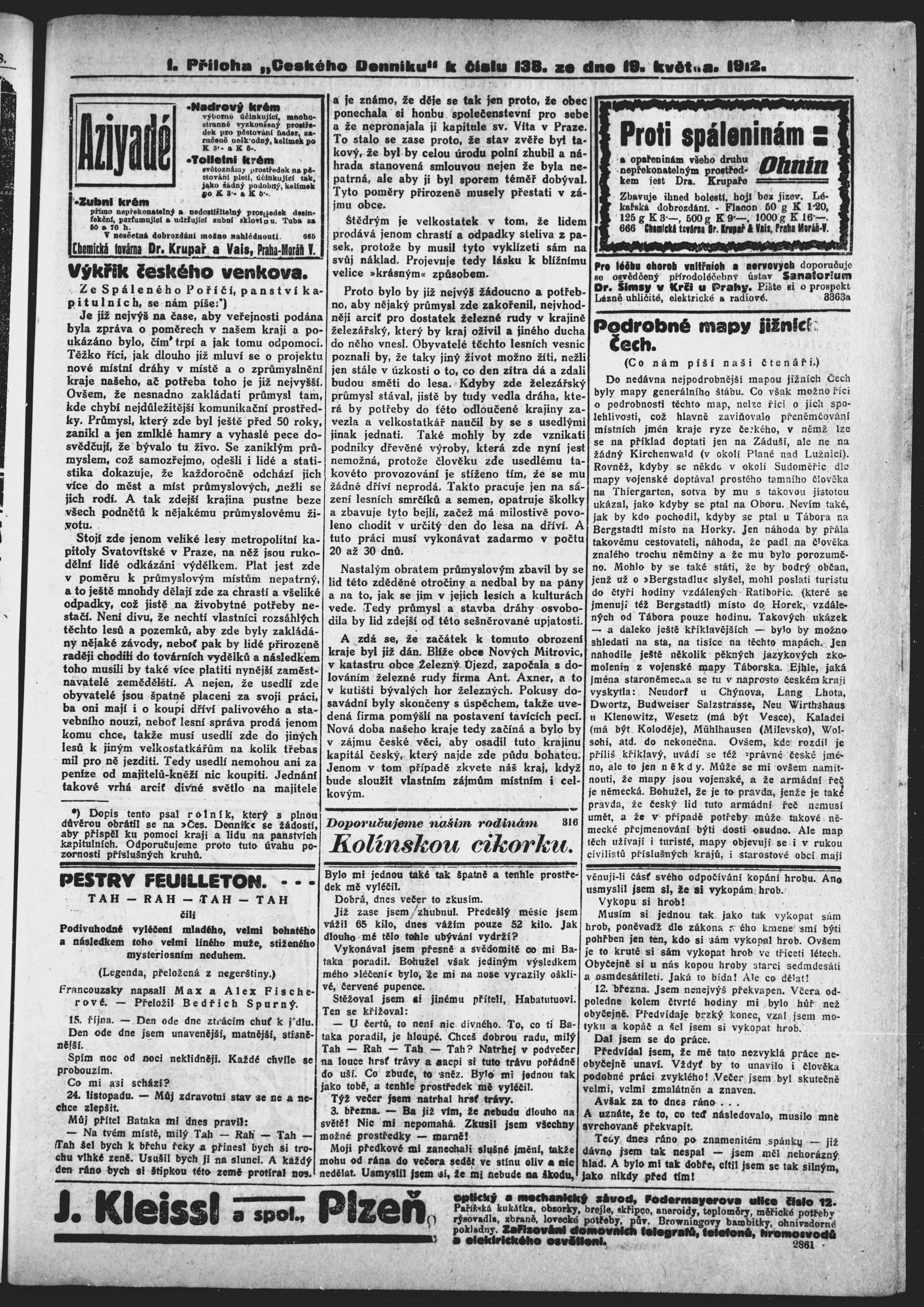 * Datum vydání výtisku: 19.5.1912 Číslo výtisku: 138 Typ výtisku: příloha