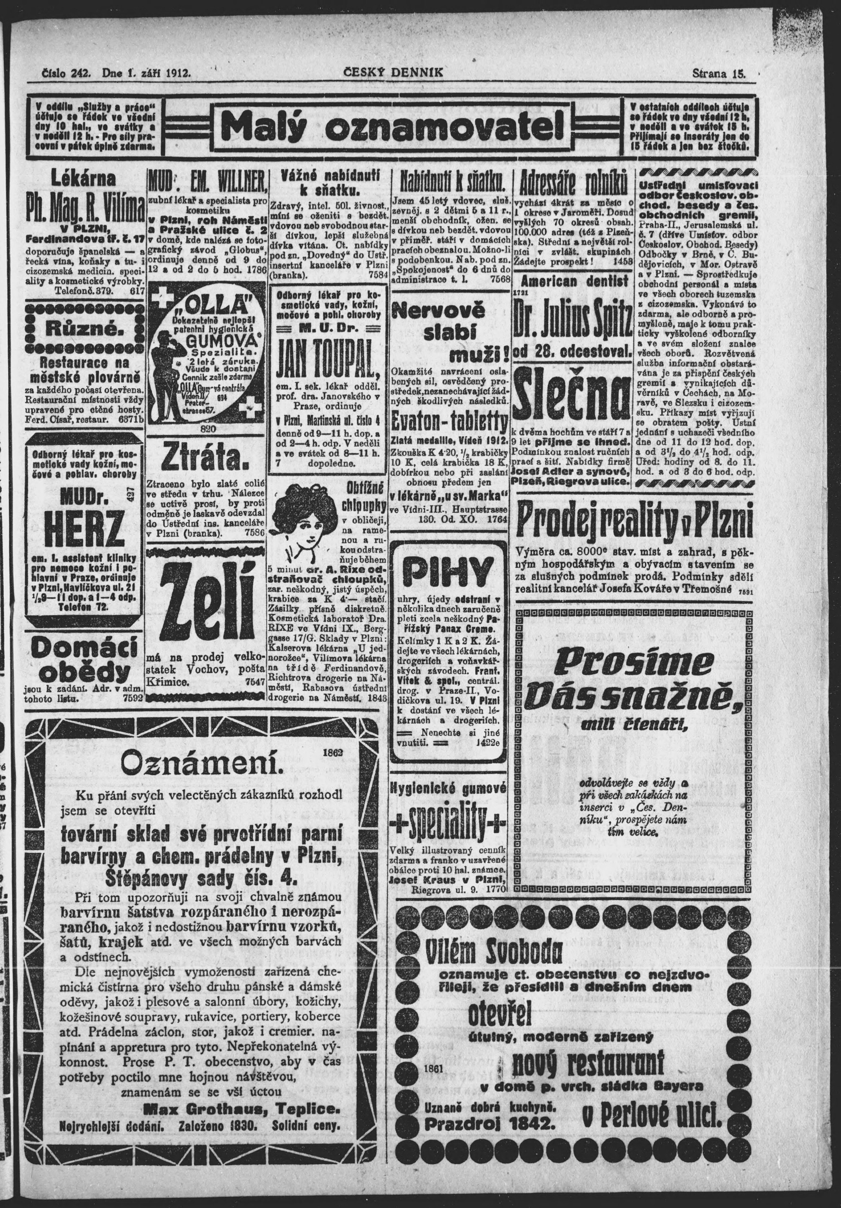 * Datum vydání výtisku: 1.9.1912 Číslo výtisku: 242