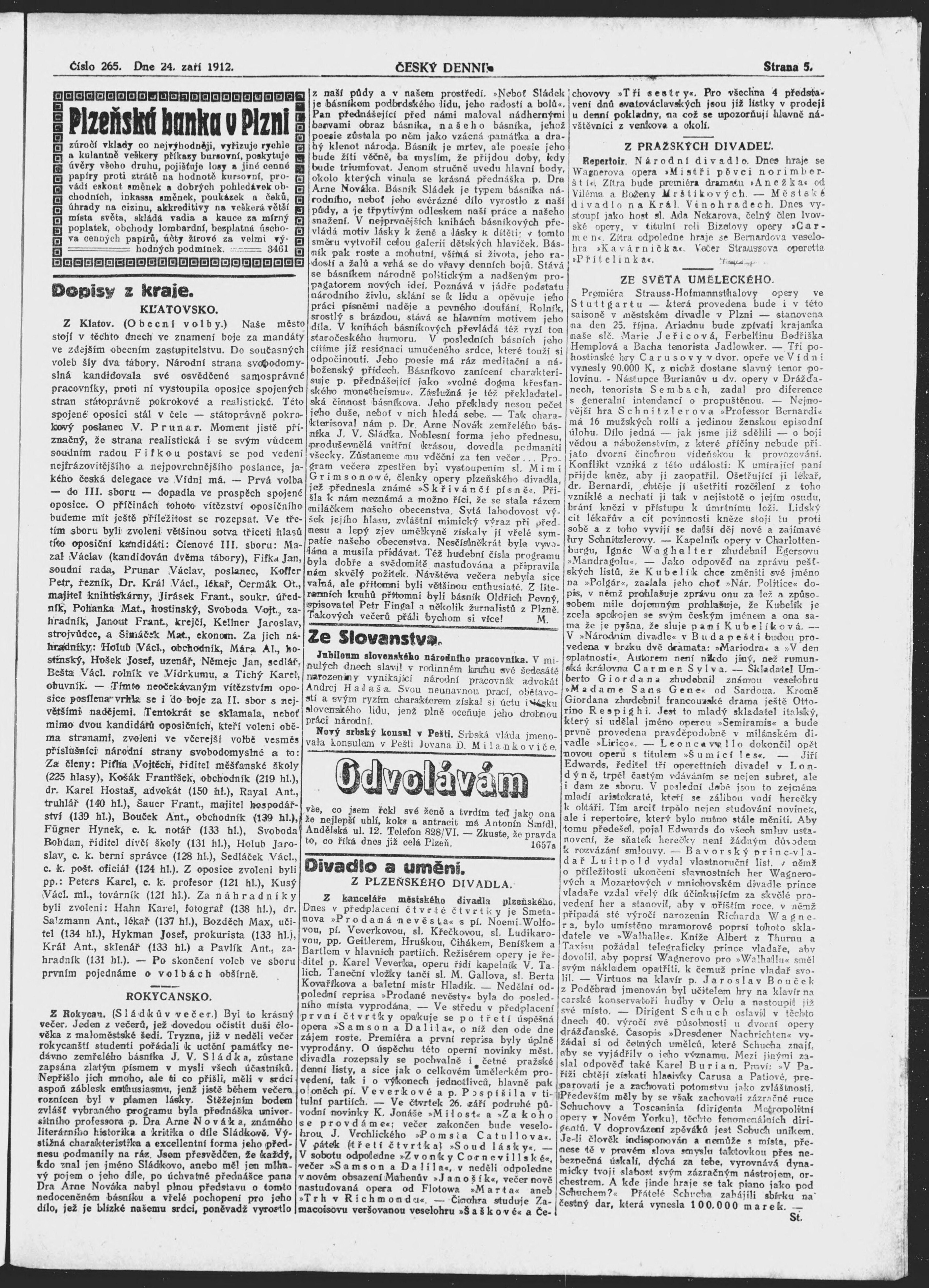 * Datum vydání výtisku: 24.9.1912 Číslo výtisku: 265