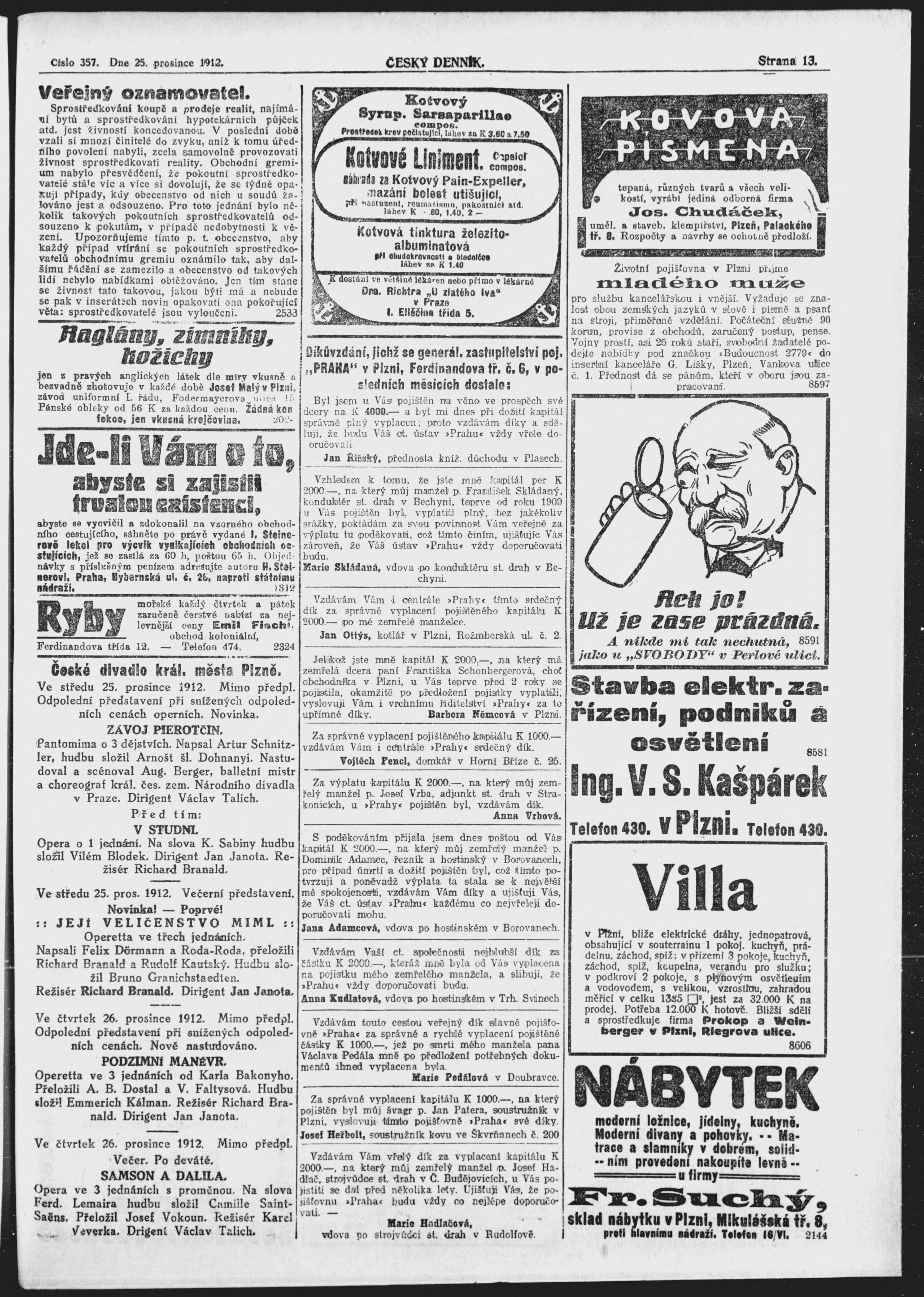 * Datum vydání výtisku: 25.12.1912 Číslo výtisku: 357