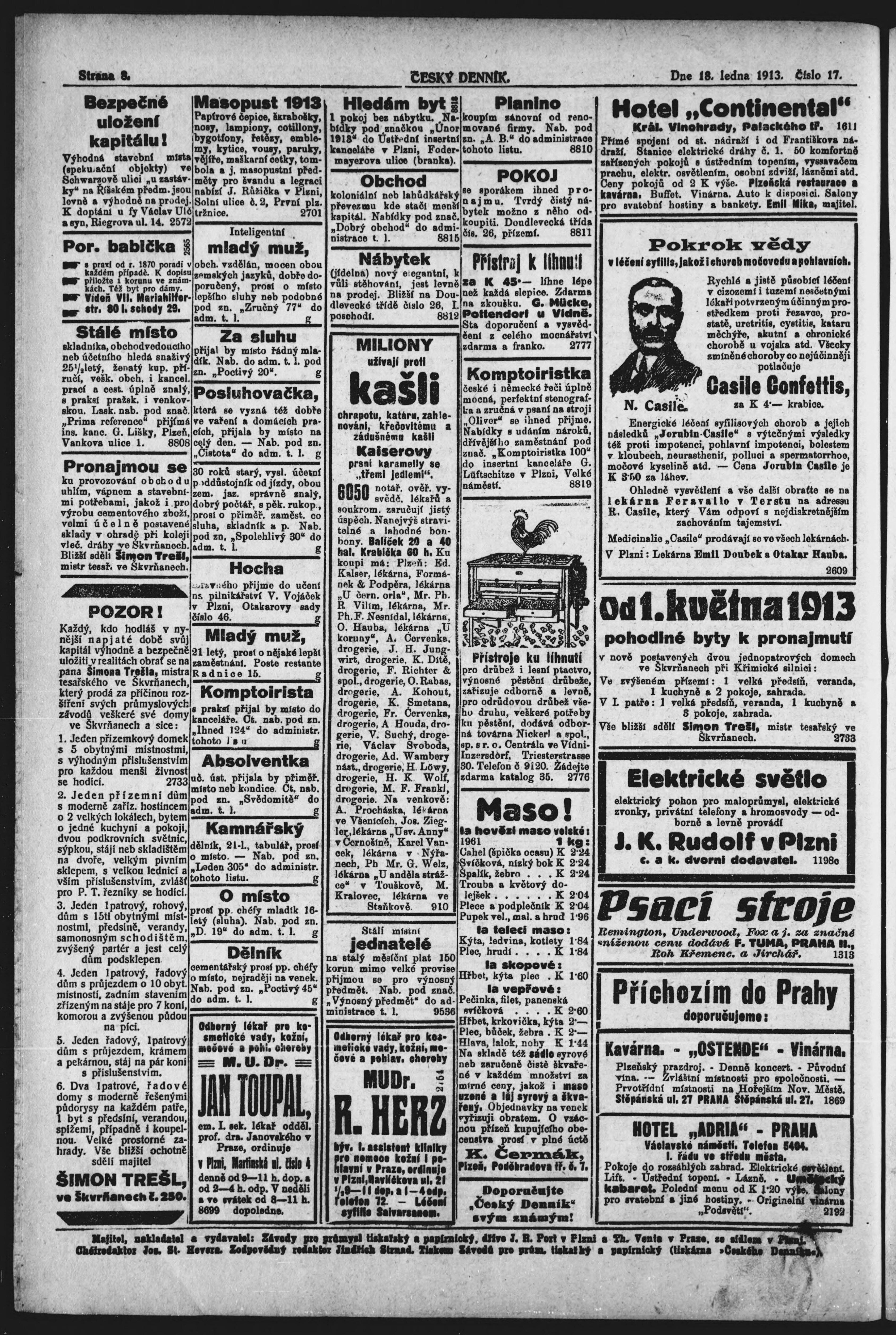 * Datum vydání výtisku: 18.1.1913 Číslo výtisku: 17