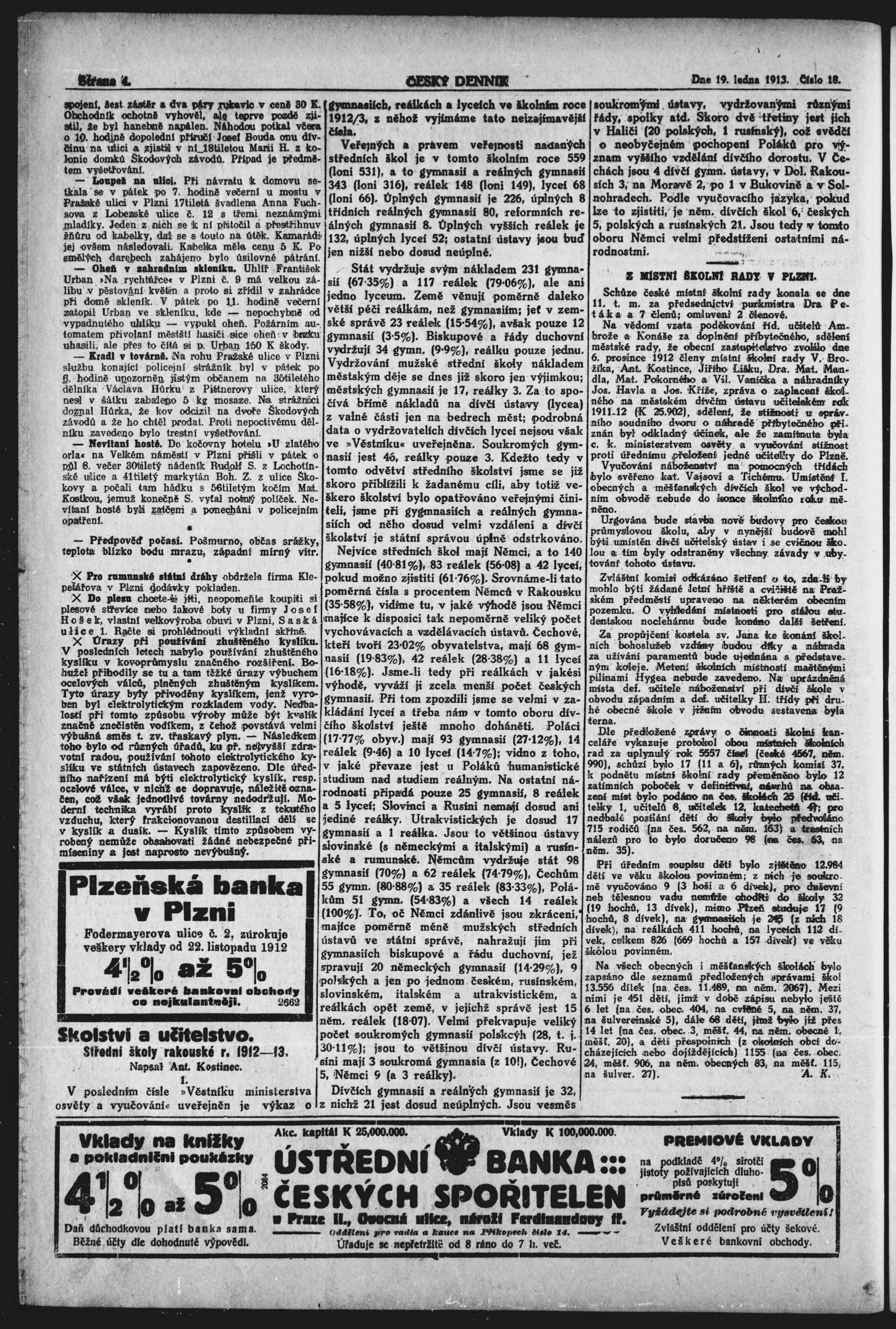 * Datum vydání výtisku: 19.1.1913 Číslo výtisku: 18
