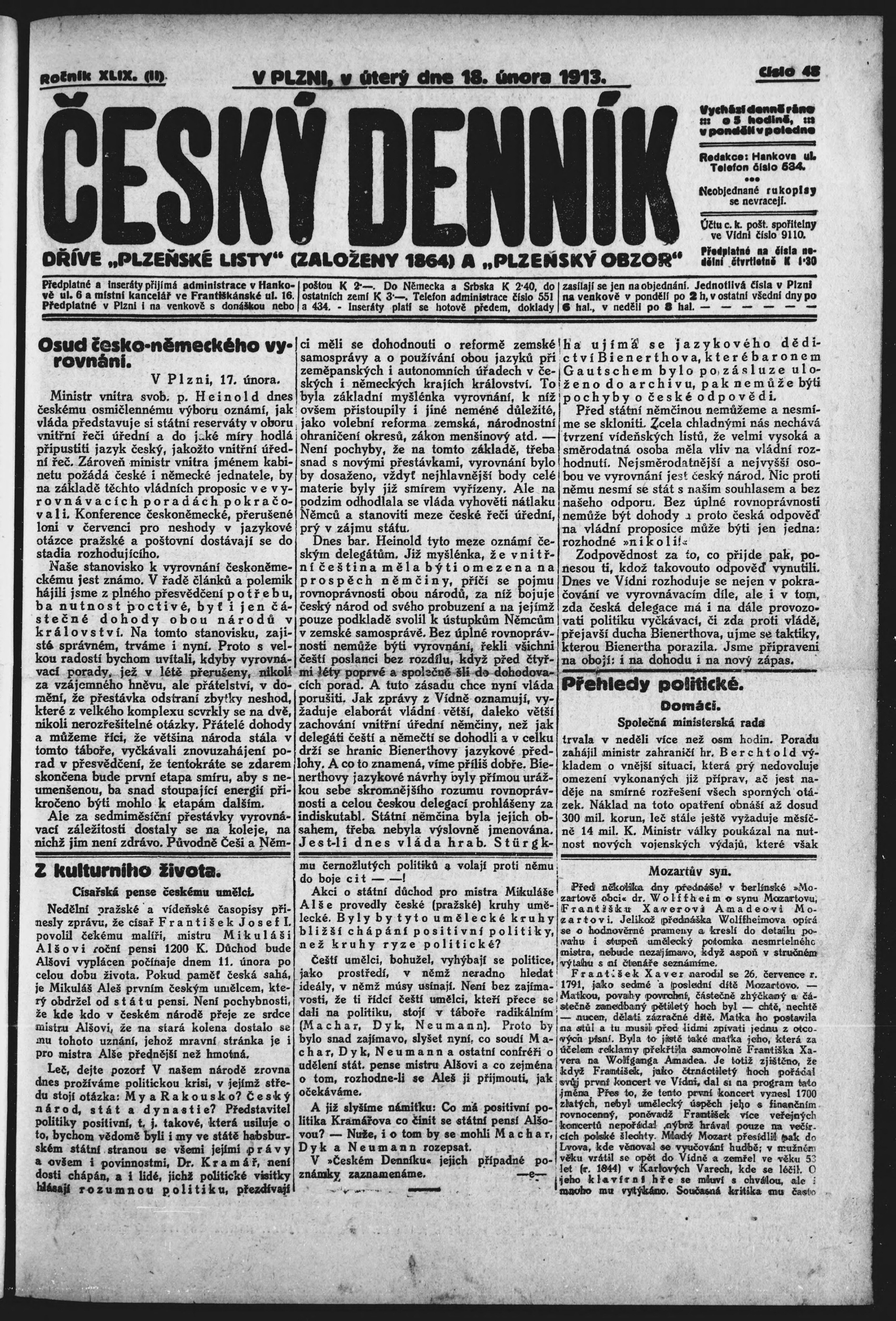 * Datum vydání výtisku: 18.2.1913 Číslo výtisku: 48