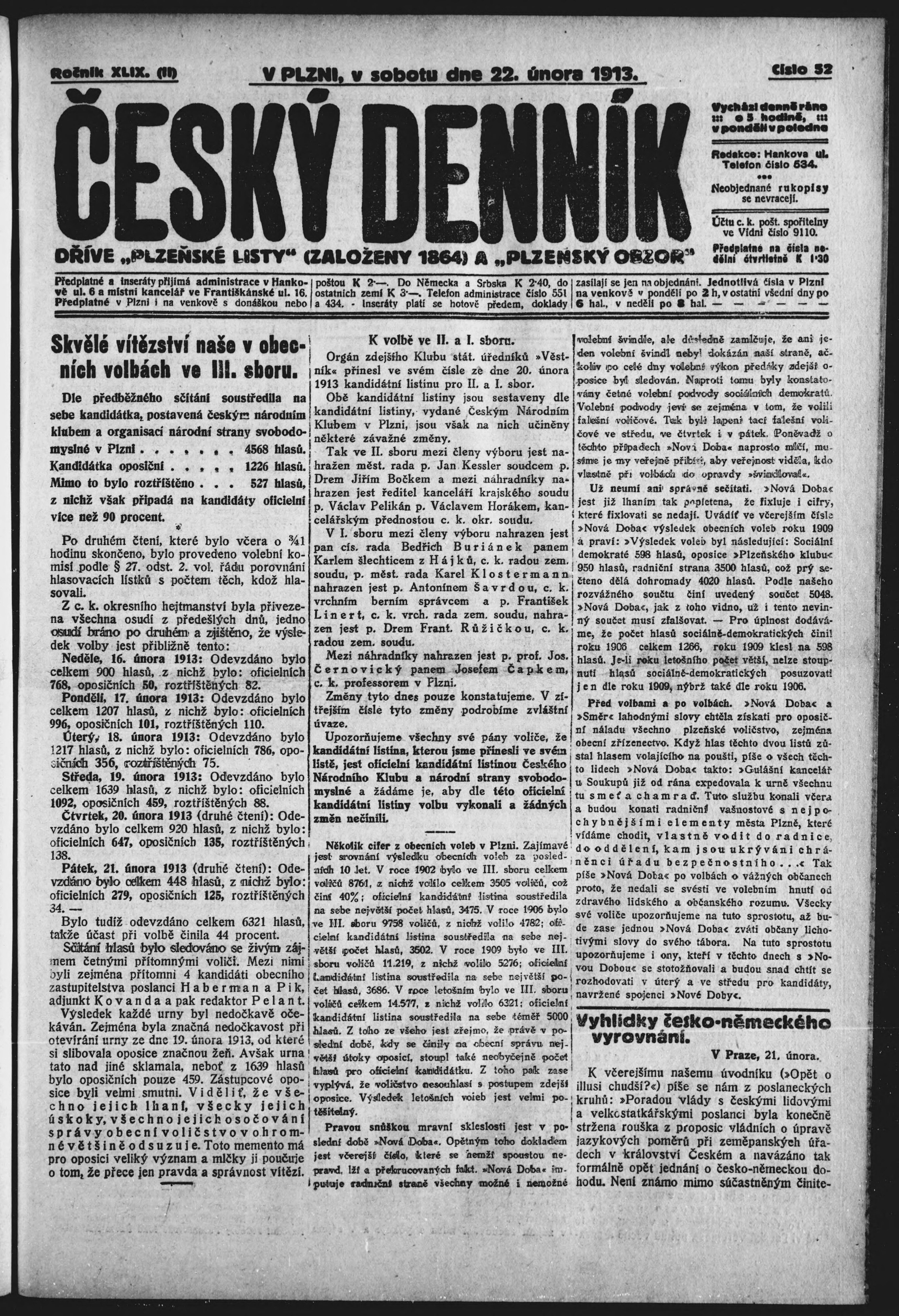 * Datum vydání výtisku: 22.2.1913 Číslo výtisku: 52